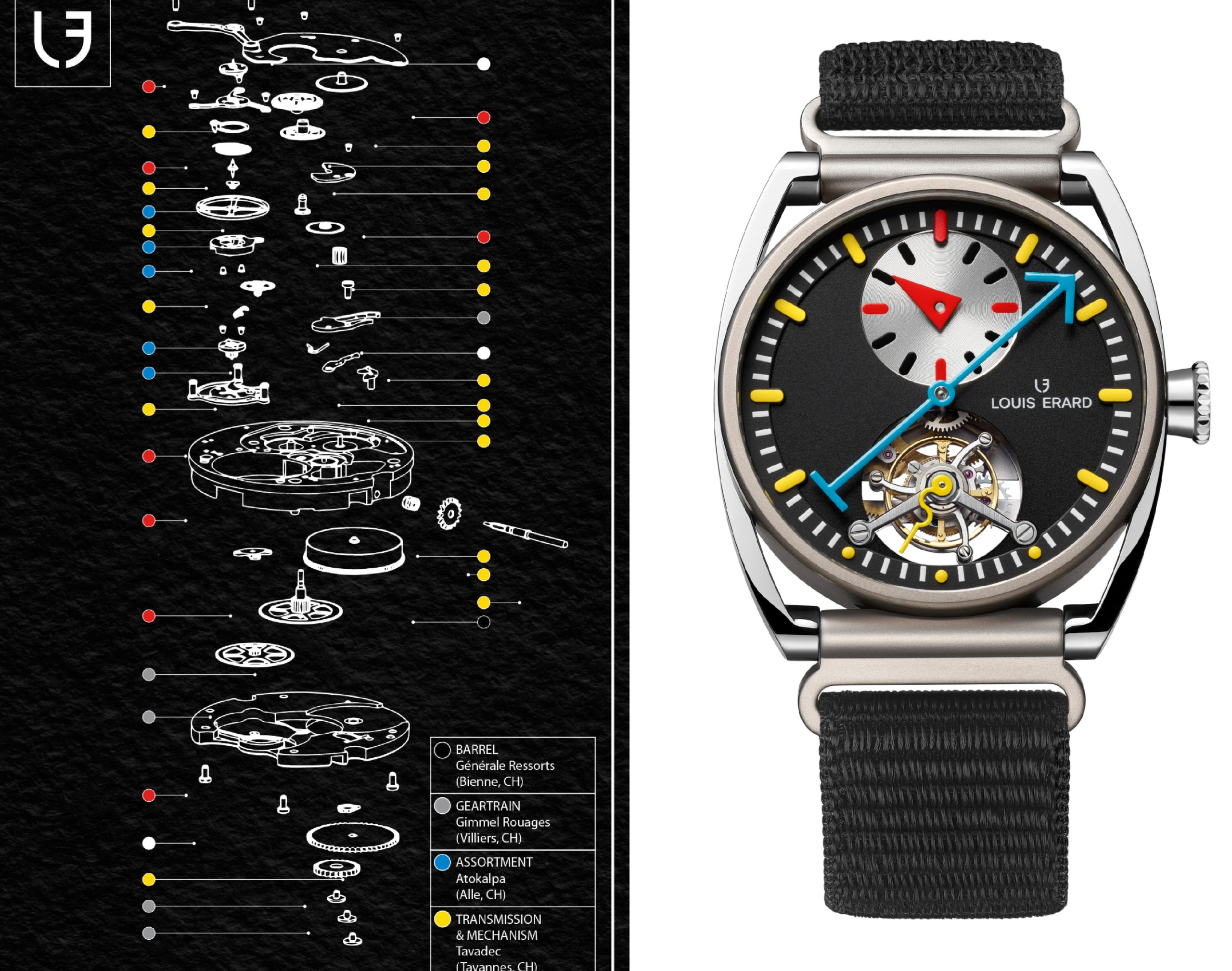 L’amicizia tra lo svizzero Manuel Emch, direttore artistico di Louis Erard, e Alain Silberstein che, dopo aver chiuso il suo atelier nel 2012, ha iniziato a lavorare insieme ad altri Marchi, si rinnova con la versione di un Regulateur Tourbillon Noir dai colori per cui il Maestro francese è noto. Colori decisi per le indicazioni “bold” sul quadrante (in italiano potremmo definirle in grassetto) che sul fondo nero risaltano in modo impressionante.