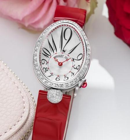 Dai documenti conservati dalla Maison Breguet si sa che l’orologio che ha ispirato la collezione Reine de Naples, era stato realizzato nel 1812, aveva una forma allungata e un cinturino realizzato con capelli intrecciati con fili d’oro permetteva di indossarlo al polso; il quadrante era in argento guilloché e mostrava alcune complicazioni tra le quali la ripetizione minuti, le fasi lunari e il termometro; dopo la consegna fu riparato nel 1849 e anche nel 1855