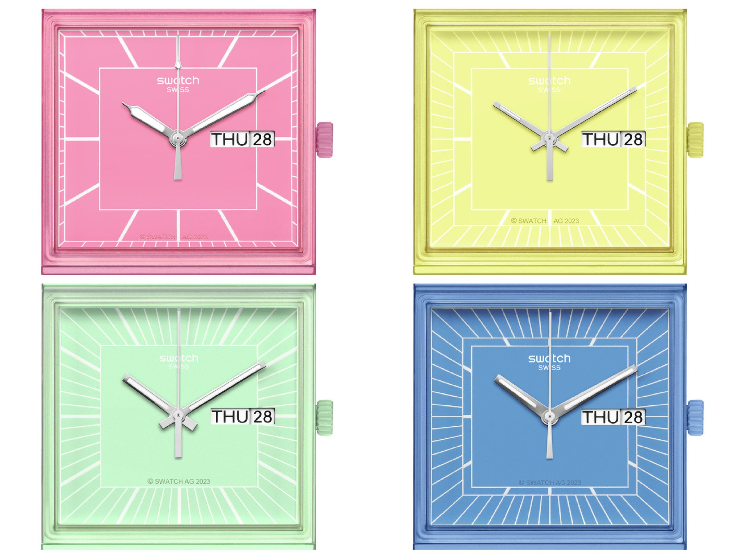 New Square Swatch collection What if? with 4 different dials and cases color.