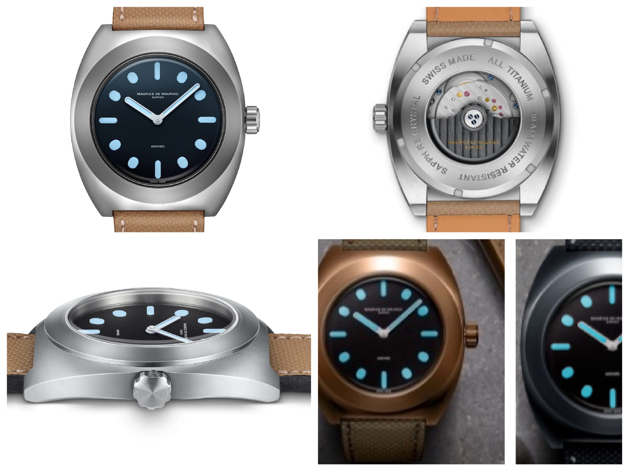 On February Maurice de Mauriac unweiled a new watch, named Pillow, with large steel also DLC or bronze case and self-winding movement La Joux Perret.