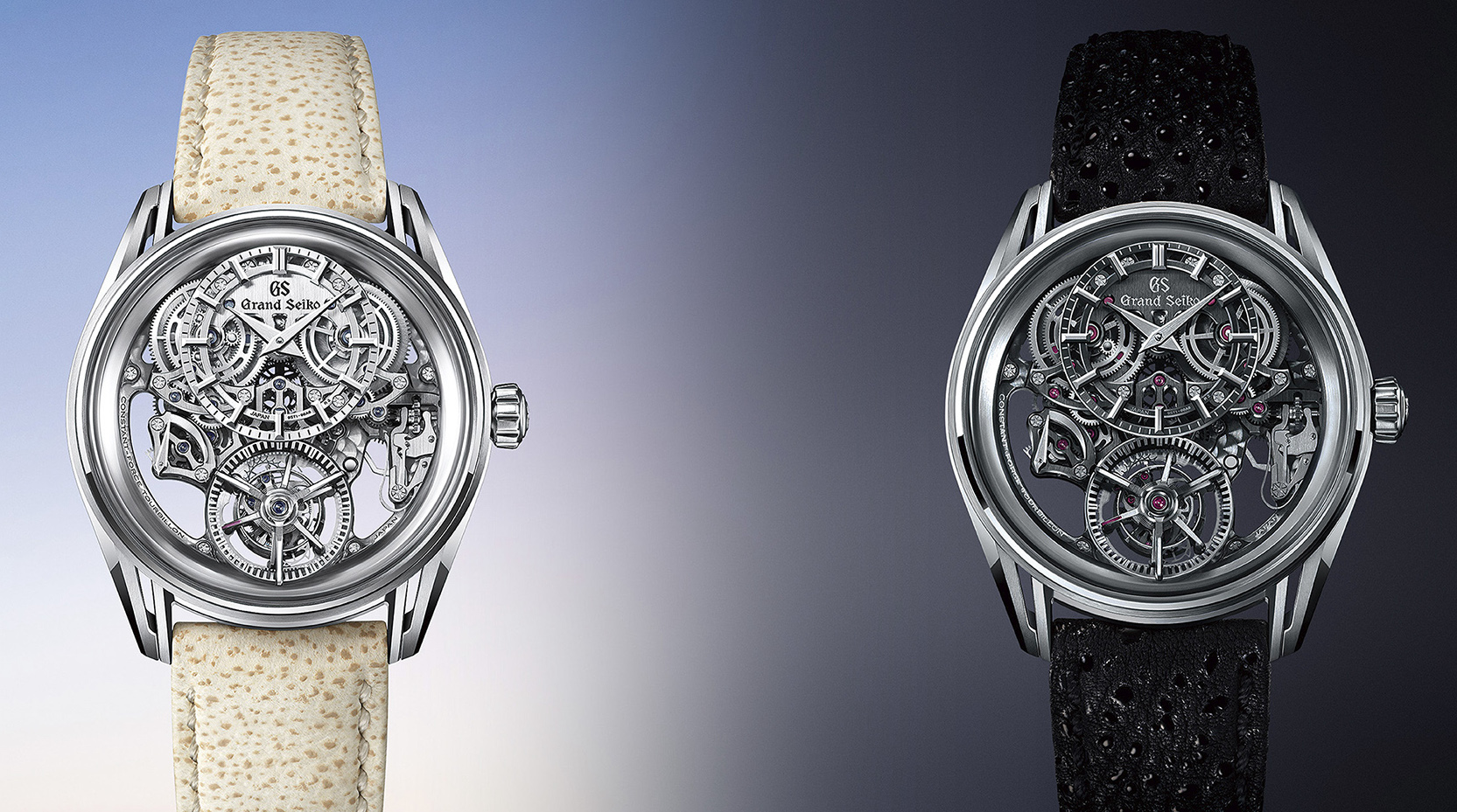 Due anni or sono Grand Seiko realizzò il Tourbillon a forza costante Kodo (che univa su un solo asse lo scappamento a tourbillon e il sistema della forza costante); in trasferta a Milano per il FuoriSalone 2024, ne abbiamo scritto pochi giorni or sono e visto che a suo tempo ha ottenuto riconoscimenti anche al G.P.H.G. ci limitiamo a dire che le versioni esposte al Palexpo sono un omaggio alla luce e all’oscurità con movimento scheletrato open-work dedicato all’alba e al tramonto e cassa in platino e in titanio, movimento di Manifattura Calibro 9ST1 realizzato presso l’Atelier Ginza. Gli esemplari della Ref. SLGT005 sono venti e saranno disponibile dal prossimo Dicembre 2024 nelle boutique Grand Seiko.