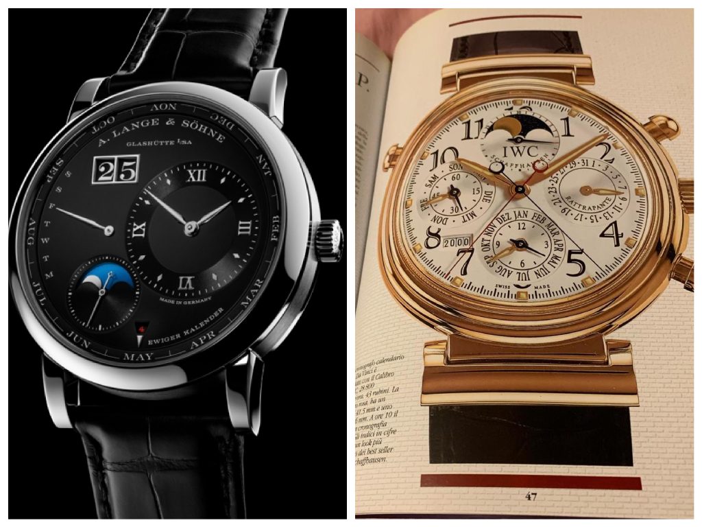 Fra i vari Marchi di vertice, probabilmente quello che nelle sue collezioni di orologi da polso ha presentato il maggior numero di Calendari Perpetui, A.Lange & Söhne, a partire dal 2001, ne conta otto o meglio nove perché al quadrante nero è stata abbinata la cassa in platino.