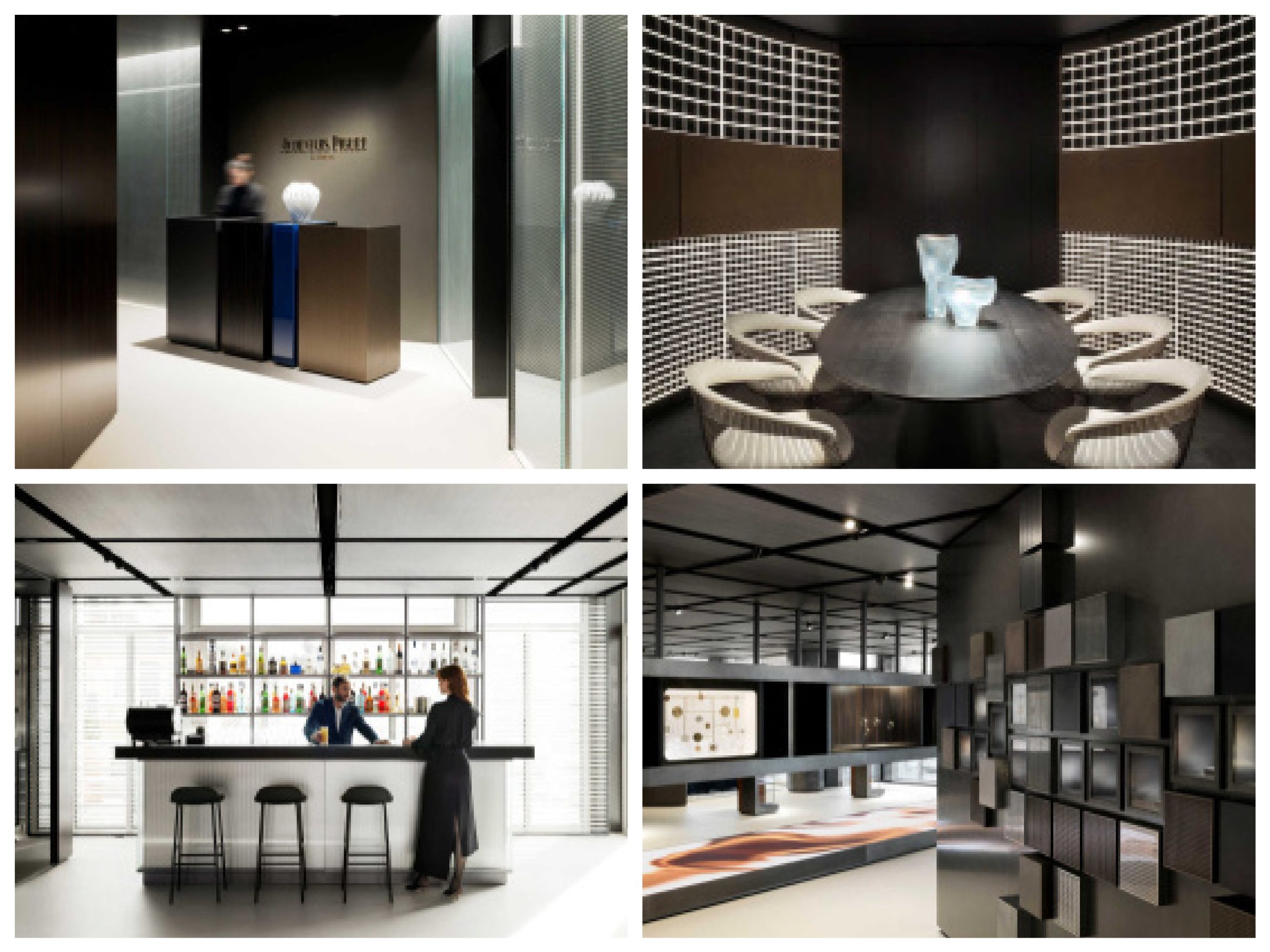Come si vede nelle prime foto disponibili scattate da Tommaso Sarto, nell’ingresso una parete di vetro e una ebano uniscono idealmente la Vallée di Le Brassus agli ambienti delle ville milanesi. Un piano è dedicato all’esposizione degli orologi attuali e di quelli storici, in un ambiente futuristico visibile o a scomparsa, su richiesta, impreziosito da elementi di arredo vintage, con mobili e creazioni di design di artisti famosi. Un piano è dedicato al servizio di assistenza e revisione con diversi maestri orologia al lavoro. Il lounge consente di immergersi in un’atmosfera interessante, né sono stati dimenticati spazi di socialità, dal bar a una sala per cene e presentazioni VIP. Infine dal tetto panoramico si gode una vista a 360°della città