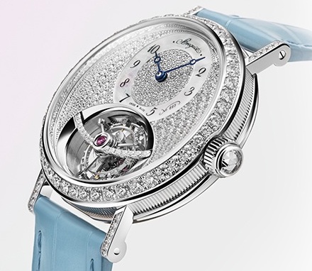 Nelle foto, sopra il Classique Tourbillon 3358 un diluvio di diamanti incastonati, a neve sul quadrante, e su cassa, anse e lunetta; movimento di Manifattura a carica manuale calibro 187D. Nella foto sotto il Marine Tourbillon Equation Matchante 5887 calibro di Manifattura a carica manuale; dopo le precedenti edizioni realizzate nel 2017, questo autunno è stata scelta una cassa in platino, ø 43,9 mm con quadrante lavorato artigianalmente a onde nella tonalità nera; la riserva di carica, tra le 7 e le 9, è di 80 h, la lancetta per l’ora solare dei minuti termina con un sole in oro giallo le altre indicazioni hanno cornici in oro bianco; la gabbia del tourbillon in titanio con bilanciere Breguet a spirale in silicio, ruota alla frequenza di 4 Hz; il calendario perpetuo è tra le 9 e le 3.