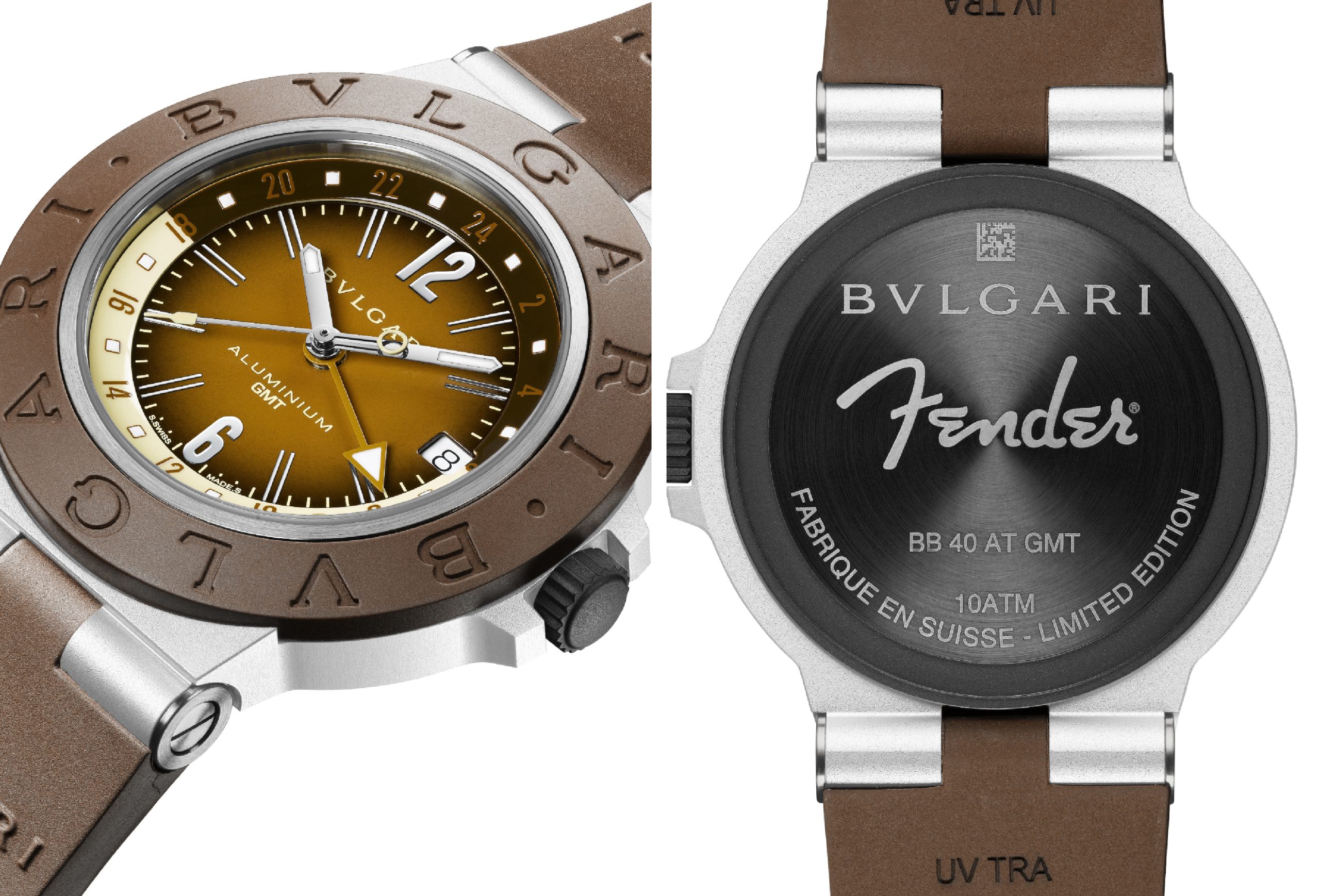 Jean-Christophe Babin, CEO di Bvlgari ha dichiarato che la collaborazione fra i due Marchi rappresenta la fusione di due eredità, L’Aluminium GMT x Fender® Limited Edition, che indica il tempo di diversi fusi orari, è uno strumento di precisione, simile a una chitarra perfettamente accordata. Con la sua iconica cassa in alluminio e titanio, quest’edizione limitata simboleggia un viaggio armonioso attraverso il tempo e il suono.”