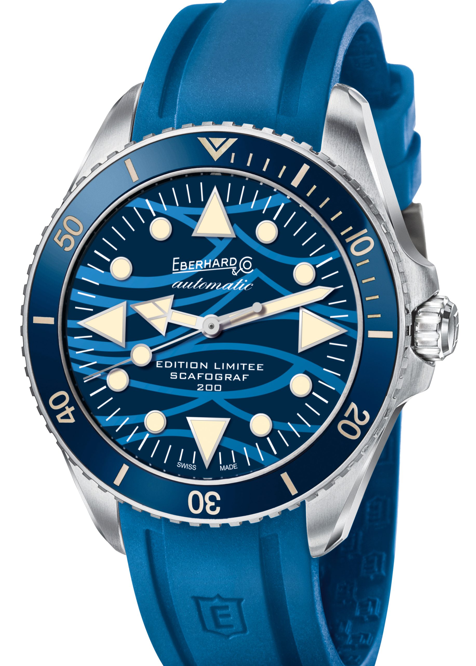 A new Scafograf 200 Onde Bleu has been unweiled by Eberhard &Co. Official Timekeeper of Salone Nautico internazionale 2024; many details are inspired by first Scafograf Diver born in 1959, dial and bezel are special; only 137 watches are avalaible.