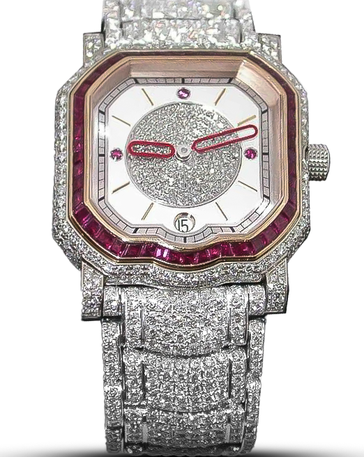 I Masterlink però hanno anche un fratello maggiore, anzi un fratello “unico” sia per il disegno sia per l’impiego delle pietre preziose che ne fanno un esemplare realizzato su commissione, come lo fu il predecessore che Genta realizzò in un unico esemplare per la principesca famiglia malese Sarawak nel 2007. I disegni che portarono allora alla sua realizzazione mostrano l’eccezionalità della lavorazione con il bracciale asimmetrico integrato e incastonato di diamanti. Oggi questa eredità torna alla ribalta dimostrando come Gerald Charles sia in grado di proporre anche pezzi unici d’alta gioielleria; le pietre preziose con diamanti taglio brillante e rubini baguette superano i 15 carati.