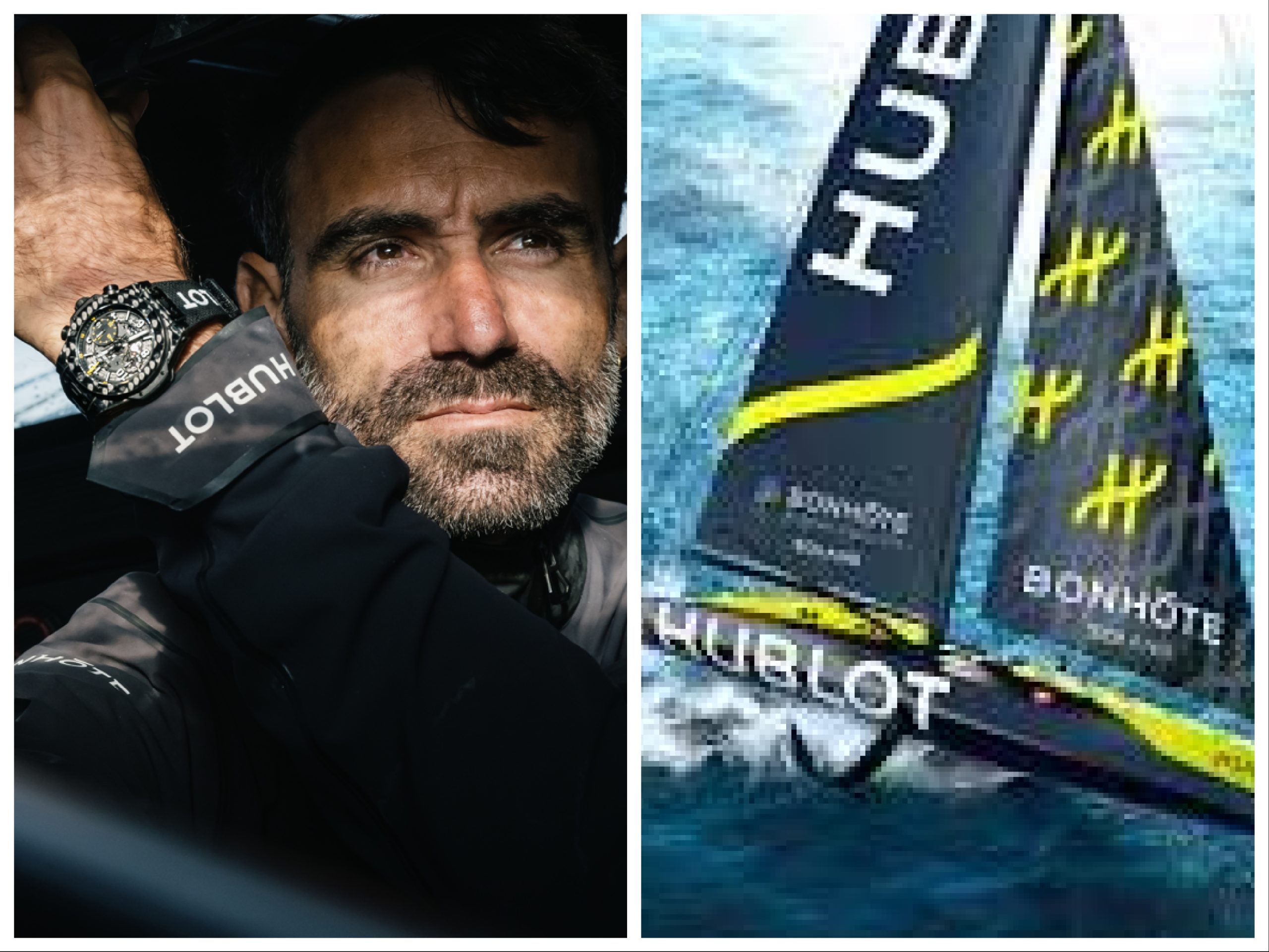 ll Big Bang Unico Sailing Team, in edizione limitata a 100 esemplari, cromaticamente è nei toni del nero e del giallo, gli stessi dell’IMOCA di Alan Roura. I due colori riprendono il binomio nero e oro del primo Hublot Classic Original degli anni Ottanta, con l’accostamento audace dell’oro giallo con cinturino in caucciù nero, da oltre 40 anni marchio di fabbrica della Manifattura. La cassa ø 42 mm in fibra di carbonio lucido accoglie il il calibro di Manifattura Unico di ultima generazione HUB1280, cronografo automatico, la cui riserva di carica è di tre giorni, A/h28.800; la ruota a colonne ha un disegno che ricorda i winch con i quali Alan manovra le vele. Il cinturino, con fibbia in ceramica nera, è in tessuto con rivestimento in poliuretano ultra-resistente nero la cui superficie ricorda quella di una vela ed è ispirato dalla randa dell’IMOCA sulla quale spicca Hublot a caratteri cubitali, gli stessi che si vedono sui cinturini disponibili, uno addizionale è in caucciù; la fibbia è in ceramica oppure c’è la chiusura con Velcro. Infine sullo scafo c’è la bandiera svizzera che appare anche sul contatore a ore 9 con la dicitura «SUI 7», trigramma che identifica l’IMOCA nelle regate oceaniche.