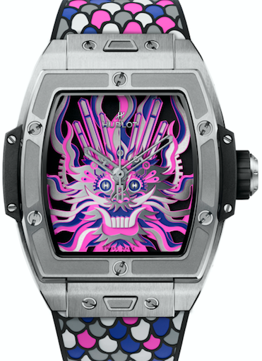 In questo omaggio al calendario cinese del 2024, si vede il drago Loong, interpretato come metafora di quella “fusion” che appare nei segnatempo Hublot.