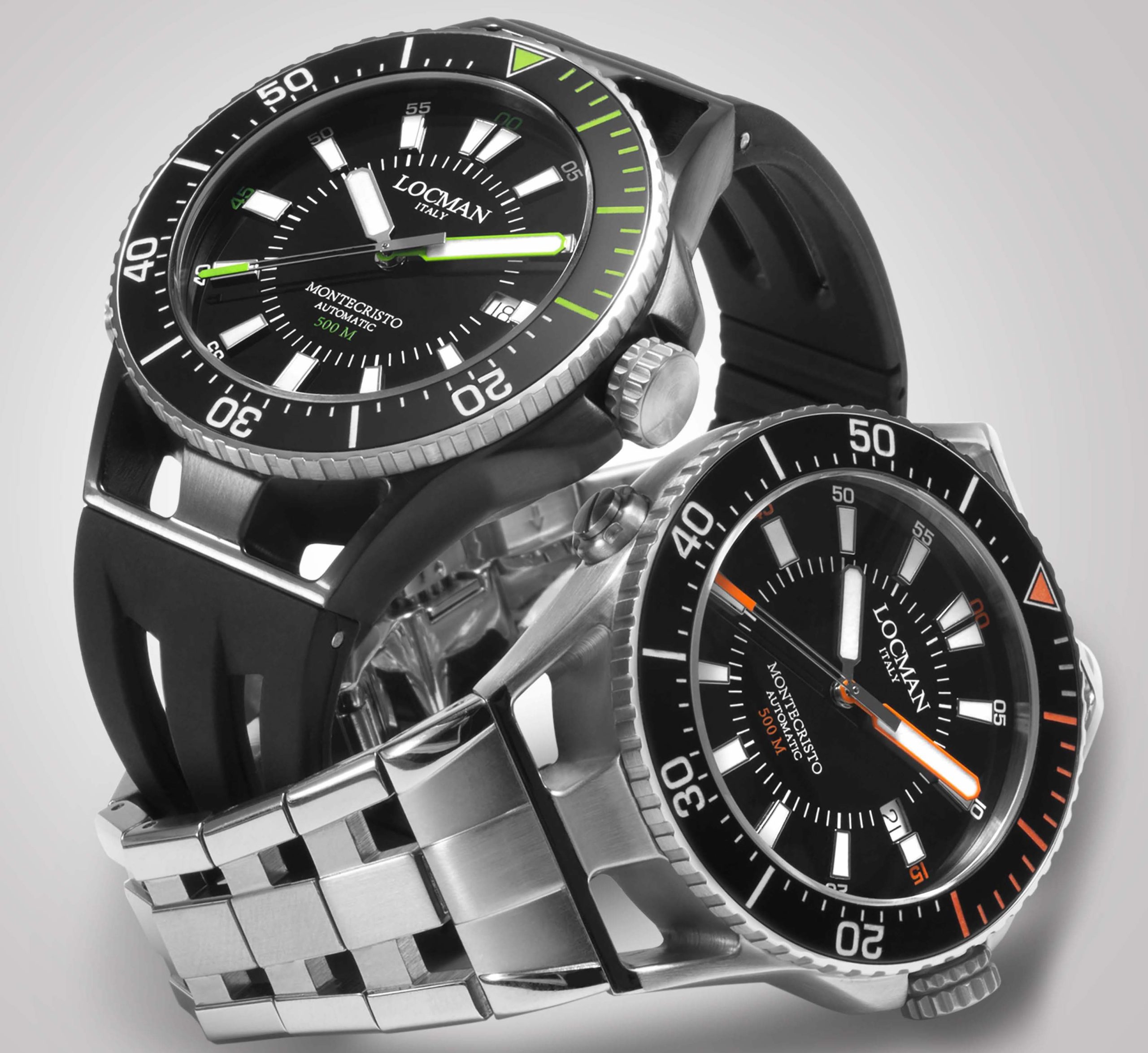 Novelty Locman: Montecristo watch is now w.r. m.500, authomatic movement, steel titanium case, blue or black dial and stop or bracelet.