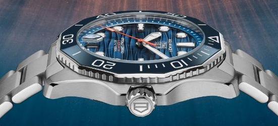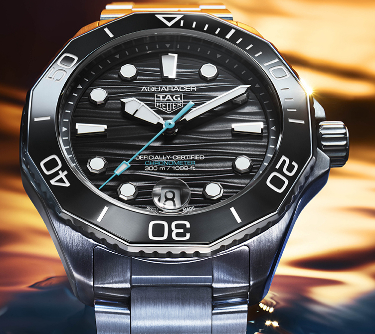 TAG HEUER ha presentato il 3 Giugno 2024 a La Chaux-de-Fonds, i muovi Aquaracer Professional, con cassa in acciaio ø 42 mm w.r. a m.300. lunetta girevole in ceramica antigraffio unidirezionale per il modello 300 Date e lunetta girevole bidirezionale per il GMT, entrambe dodecagonali; sui fondelli chiusi l’incisione di un casco da subacqueo e la frase 300 m, TAG HEUER, Aquaracer, Swiss Made since 1860.