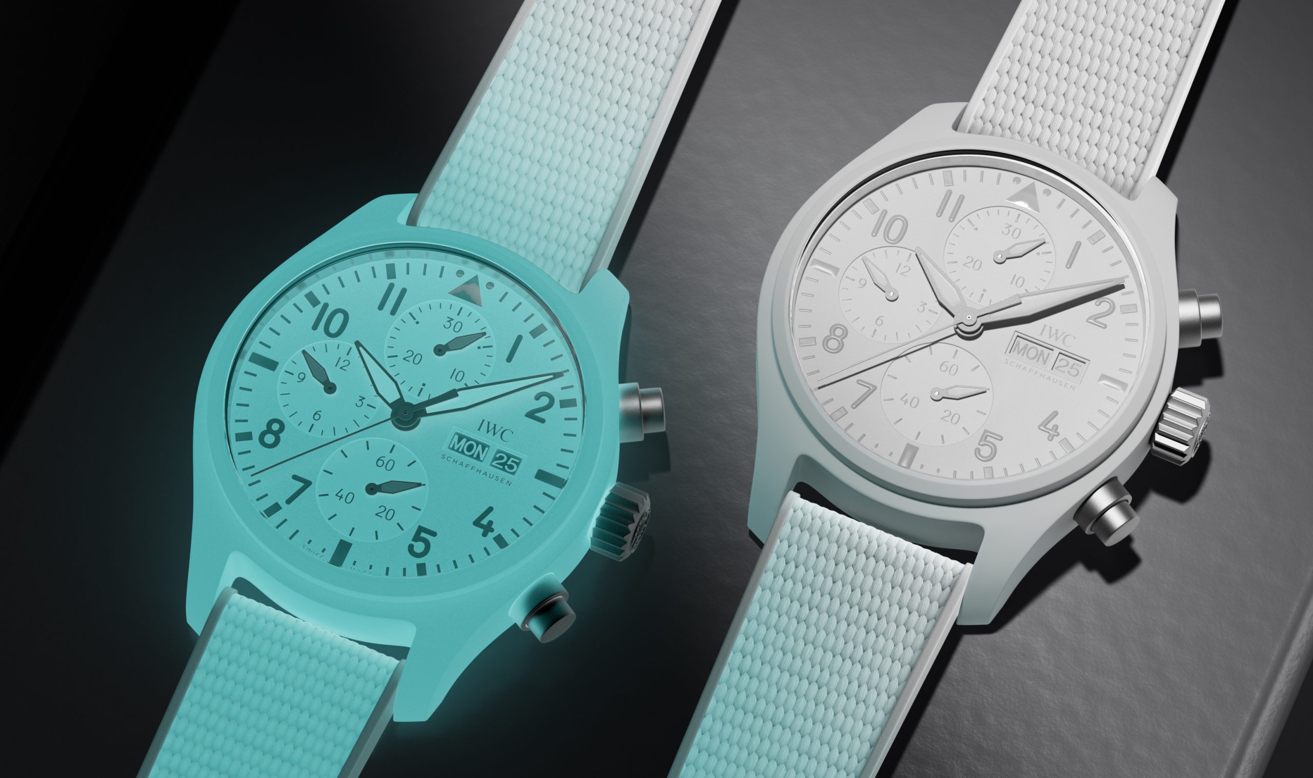 Oltre alla cassa saranno luminescenti anche il quadrante e il cinturino in gomma, arricchito di pigmenti Super-LumiNova®. Durante il giorno questo nuovo materiale assorbe la luce naturale o artificiale per poi “stoccarla” e utilizzarla quando cresce il buio per circa 24 h. Per gli appassionati della storia, ricordiamo che la prima cassa IWC in ceramica nera, leggera e molto resistente, composta da ossido di zirconio e ceramica, risale al 1986 e fu seguita da una lega composta da “brown silicon nitride ceramic e black boron carbide ceramic”, quella attuale ha visto al lavoro durante diversi anni i tecnici della compagnia svizzera RC Tritec e di Luminova. Il risultato è stato comunicato ieri 27 Maggio 2024 a Schaffhausen.