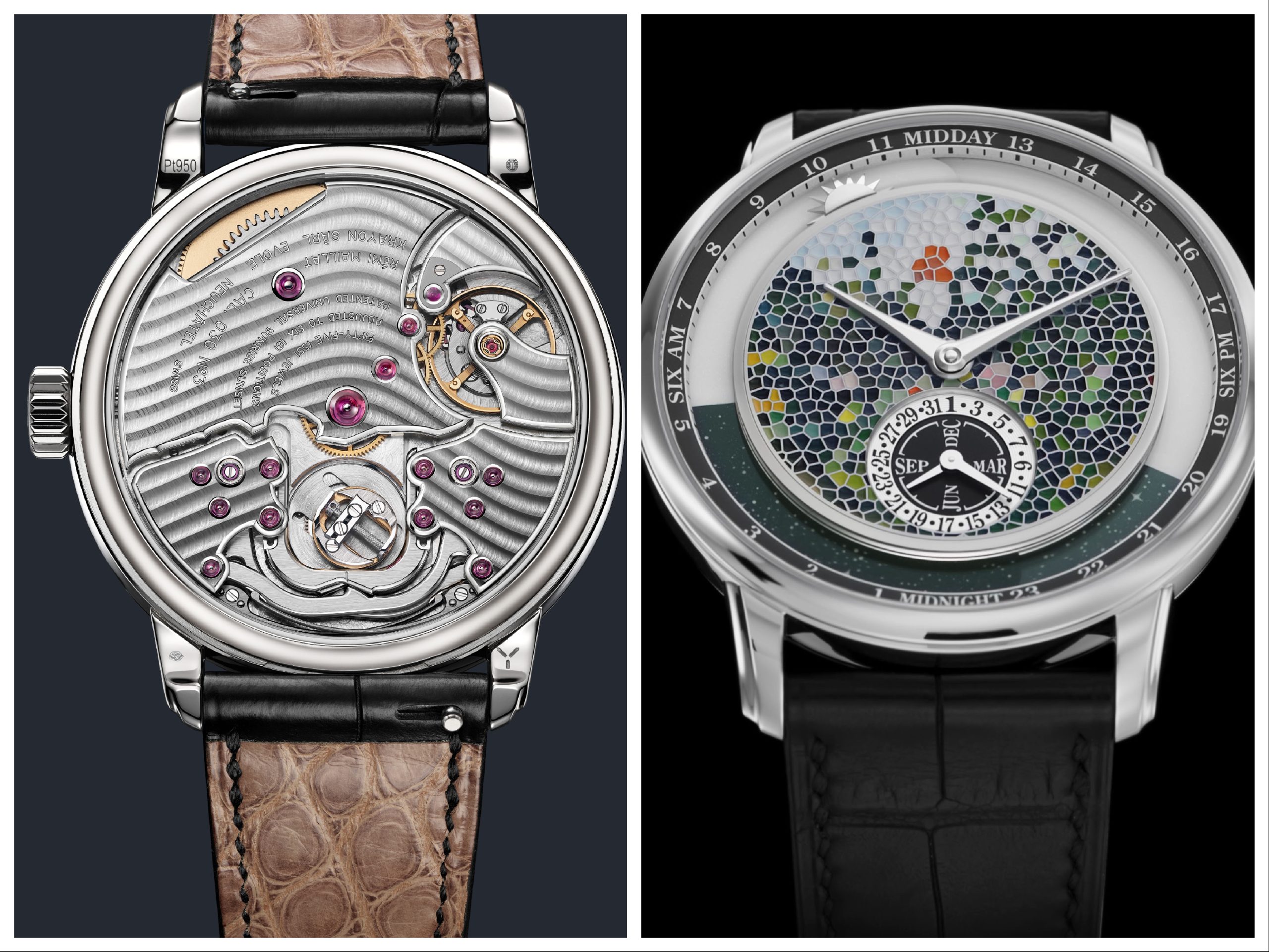 La cassa di questo segnatempo, ø 39 mm, è in platino iil suo spessore è mm 9,5. Al suo interno custodisce il Calibro C030 a carica manuale (Frequenza 3 Hz, riserva di carica 72 h, con sistema di arresto, 55 rubini). Il quadrante è un quadro da scoprire attentamente sotto il profilo cromatico. Realizzato manualmente con la tecnica della pittura miniatura è l’interpretazione orologiera del quadro di Rousseau “Foresta vergine al tramonto”; ore e minuti sono indicati dalle lancette al centro; oltre all’indicazione del giorno e della notte sulla fascia a due colori, con indicazione delle 24 h (mezzogiorno alle 12 e mezzanotte alle 6) il proprietario può scegliere sulla fascia periferica l’ora preferita dell’alba e del tramonto; infine alle 6 la data del giorno e i mesi. Il tutto completato da un cinturino in pelle con fibbia ad ardiglione in platino. La tiratura di questo capolavoro che trasporta il proprietario in un mondo onirico, tutto personale, è limitata a 15 esemplari.