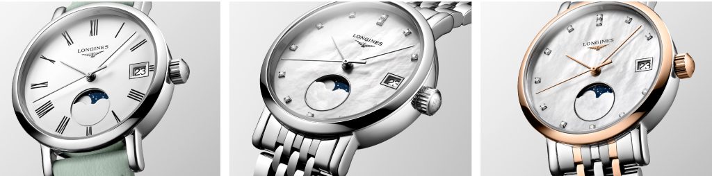 Noi appassionati di orologi (visto che a Ginevra sono state molte le Maison che hanno proposto questa romantica complicazione) abbiamo scelto i Longines con con la Luna della famiglia Elegant.