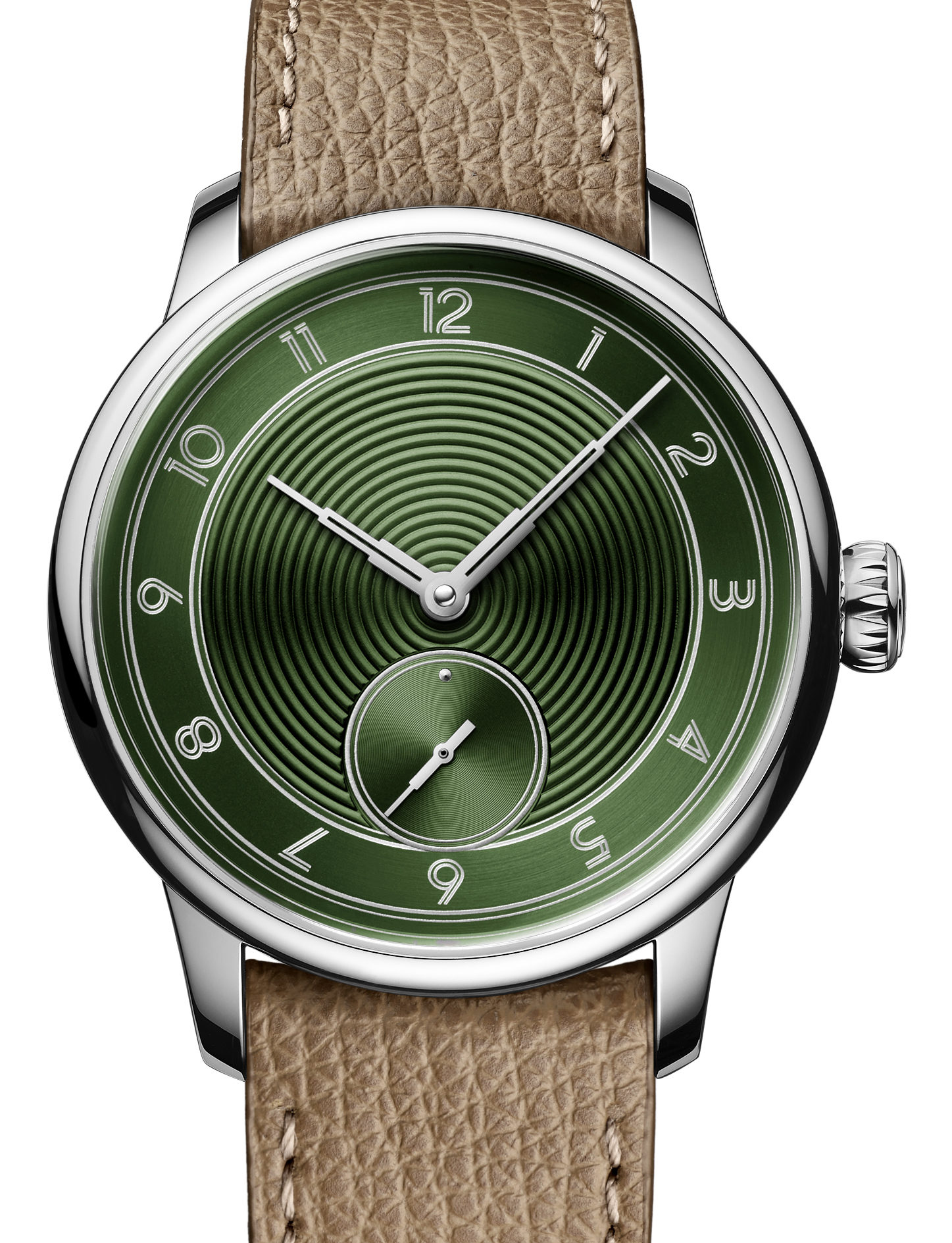 After one year fourth dial in Metropolis collection, after anthracite, salmon and tobacco, a beautiful green round worked. Self-winding movement Sellita SW261-1.