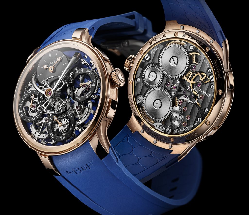Nella collezione LM, Legacy Machine, che comprende modelli classici MB&F, sono arrivate nuove versioni dopo quelle del 2020. L’attuale LM Evo Perpetual Calendar Silicon Valley, con il calendario perpetuo integrato, presentato nel 2024, è caratterizzato dalla cassa ø 44 mm e da un quadrante blu con ore e minuti decentrati al 12, al quale si coordina anche il cinturino in caucciù.