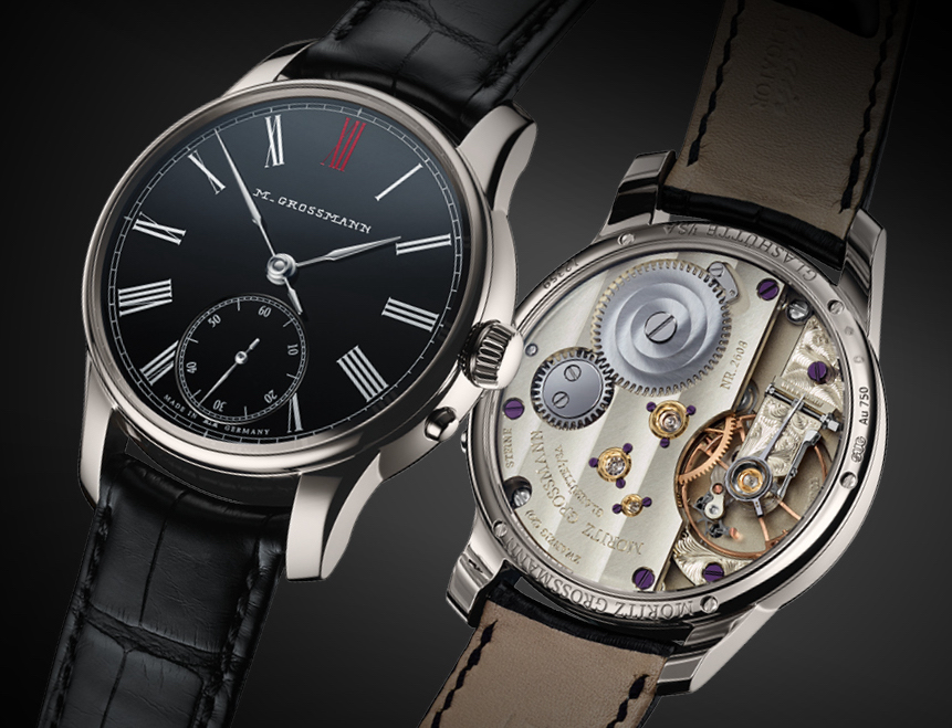 New watch made in Glashütte in limited edition (8 watches) tribute to XVI Anniversary of reborn Moritz Grossmann Factory with white gold case and black enamelled Gran Feu dial. Movement is Manufactured Caliber 100.1.