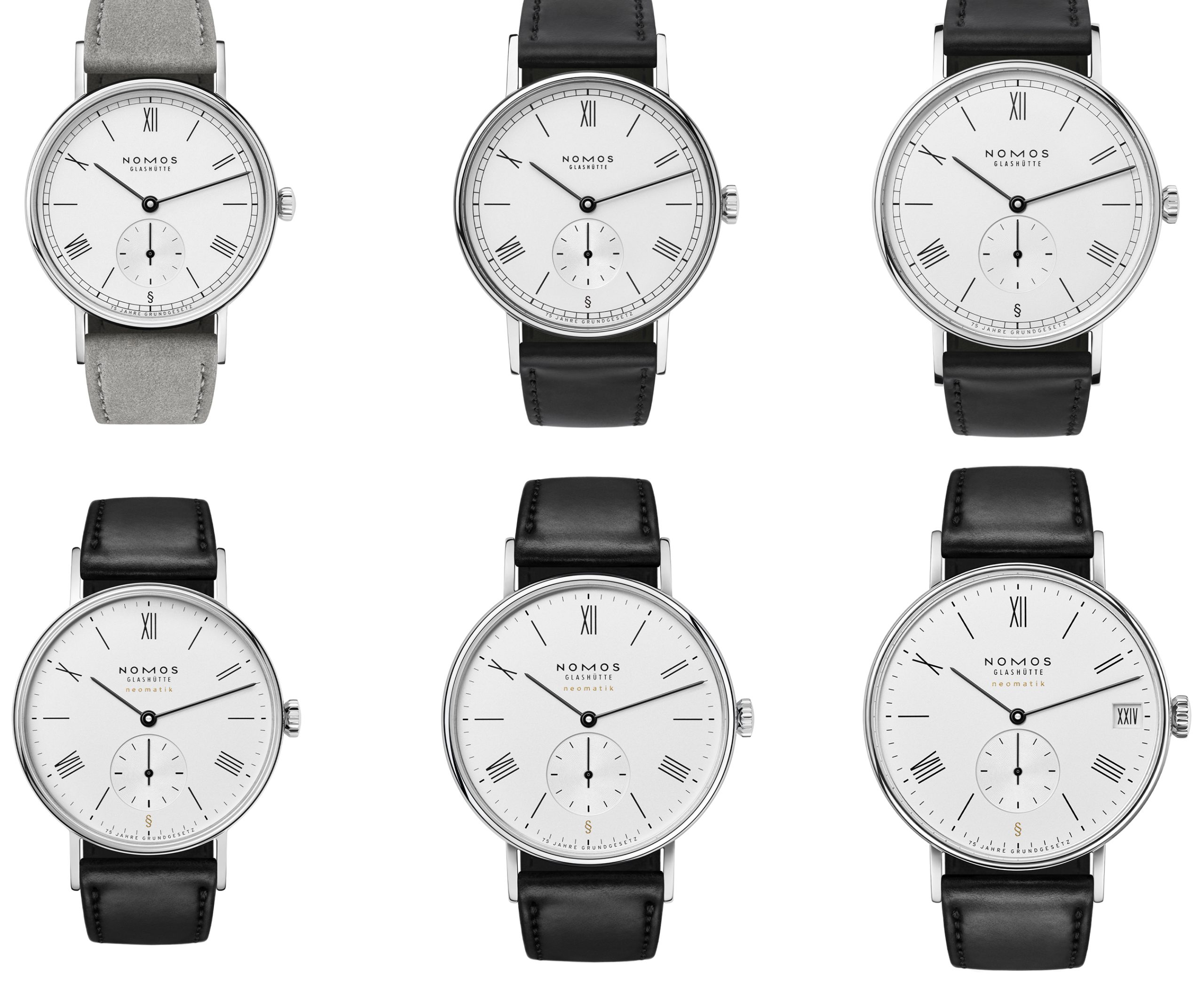 Yesterday May 8th, Federal Republic of Germany was 75 years old and new six Nomos watches remember it in limited edition: of course 75 watches. Three Ludwig in different sizes with steel case and handwoumded movement and three Ludwig with Neomatik movement (all movements in house manufactured).
