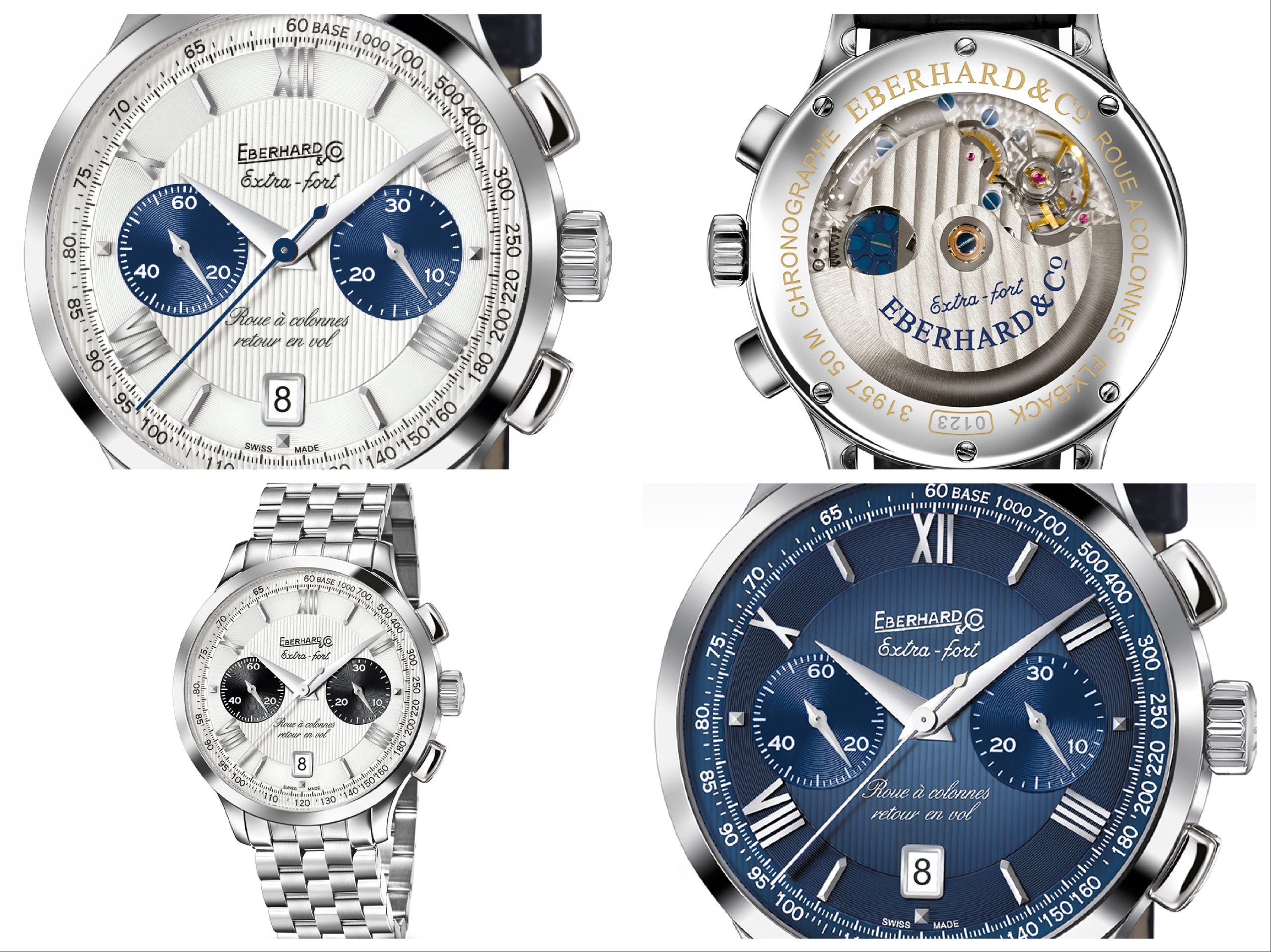 Since 1940 Eberhard Extra-fort cronograph with golden case was among dreams of people loving chronographs, now new versions vitré have been unweiling with steel case and different dials.