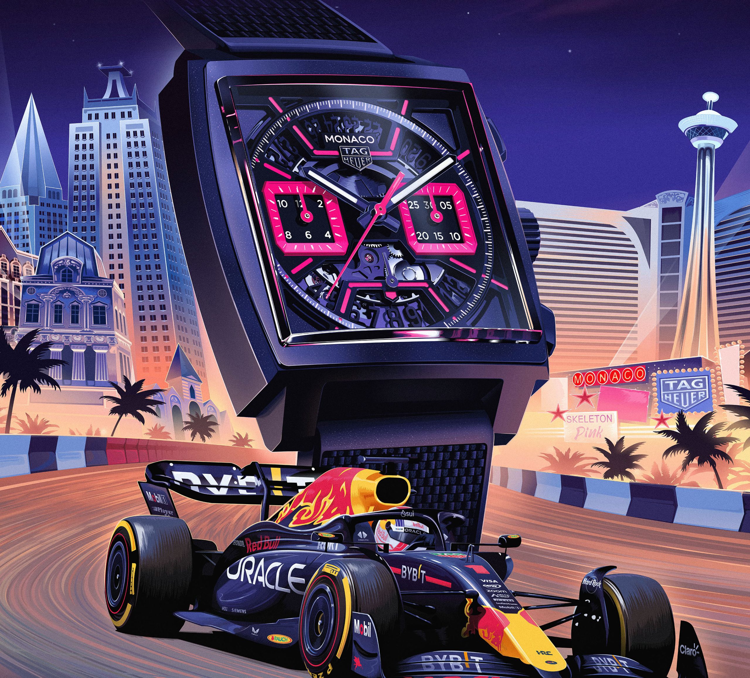 New version of TAG Heuer Monaco Chronograph unweiled for Las Vegas F1 Gran Prix in Nevada.