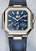 La collezione Cubitus annovera tre versioni, tutte con cassa quadrata con angoli stondati ø 45 mm.. La più preziosa, in platino (le altre due sono in acciaio e acciaio e oro rosa) è la Ref. Ref. 5822P-001 che accoglie un nuovo movimento a visualizzazione istantanea, per il quale sono state depositate sei domande di brevetto.