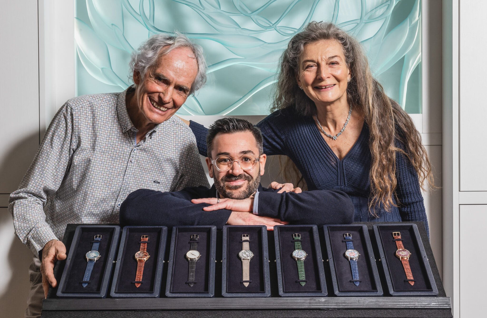 Facilmente chi ama la storia orologiera pensa a un’altra impresa specializzata in quadranti, quella degli Stern, che negli anni Trenta è diventata la moderna Patek Philippe e ai quadranti Vaucher del XIX sec., ma torniamo al 2024 e alla prima collezione di sette orologi esclusivi con quadranti raffinati, presentata da Olivier Vaucher, sua moglie Dominique che nel 1978 hanno fondato l’atelier Vaucher e Olivier Gaud.