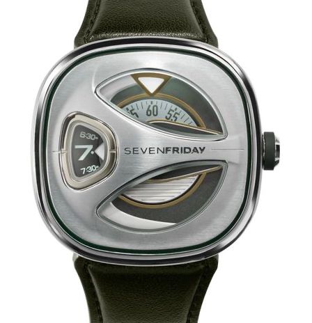 Il dettaglio colorato del disco nella collezione M-Series è nato nel 2014 sulla versione ø 47 mm e dieci anni dopo è stato impiegato come omaggio a Raymond Loewy noto nell’industrial design per proporre linee di successo, oltre al verde (credeteci sulla parola anche se sul computer non si vede bene) c’è anche in nero.