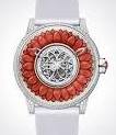 Entrando nel campo degli orologi gioiello la collezione Dahlia di Beauregard offre preziosi quadranti, animati da calibro automatico svizzero, scegliendo di volta in volta pietre preziose monocromatiche: qui i petali dell’Opale Rosso Fuoco impiegati nell’automatico tourbillon, ma la scelta comprende anche turchesi, topazi e altro.