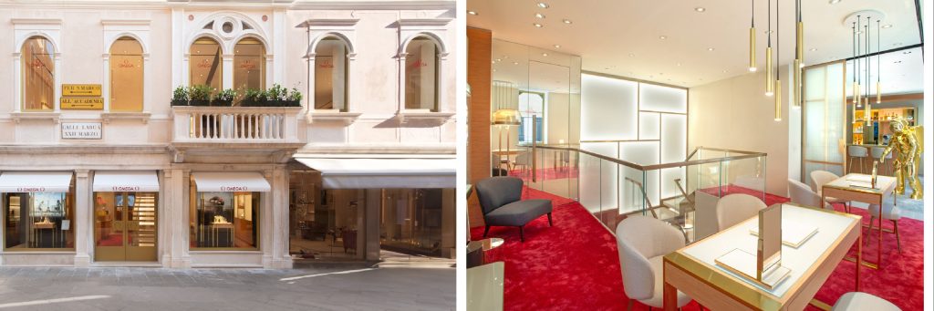 Lasciata Salizada San Moisé, dove era rimasta per 12 anni, Omega dispone da Settembre di una più ampia boutique (oltre 200 mq su due piani) in Calle Larga nel cuore della città.