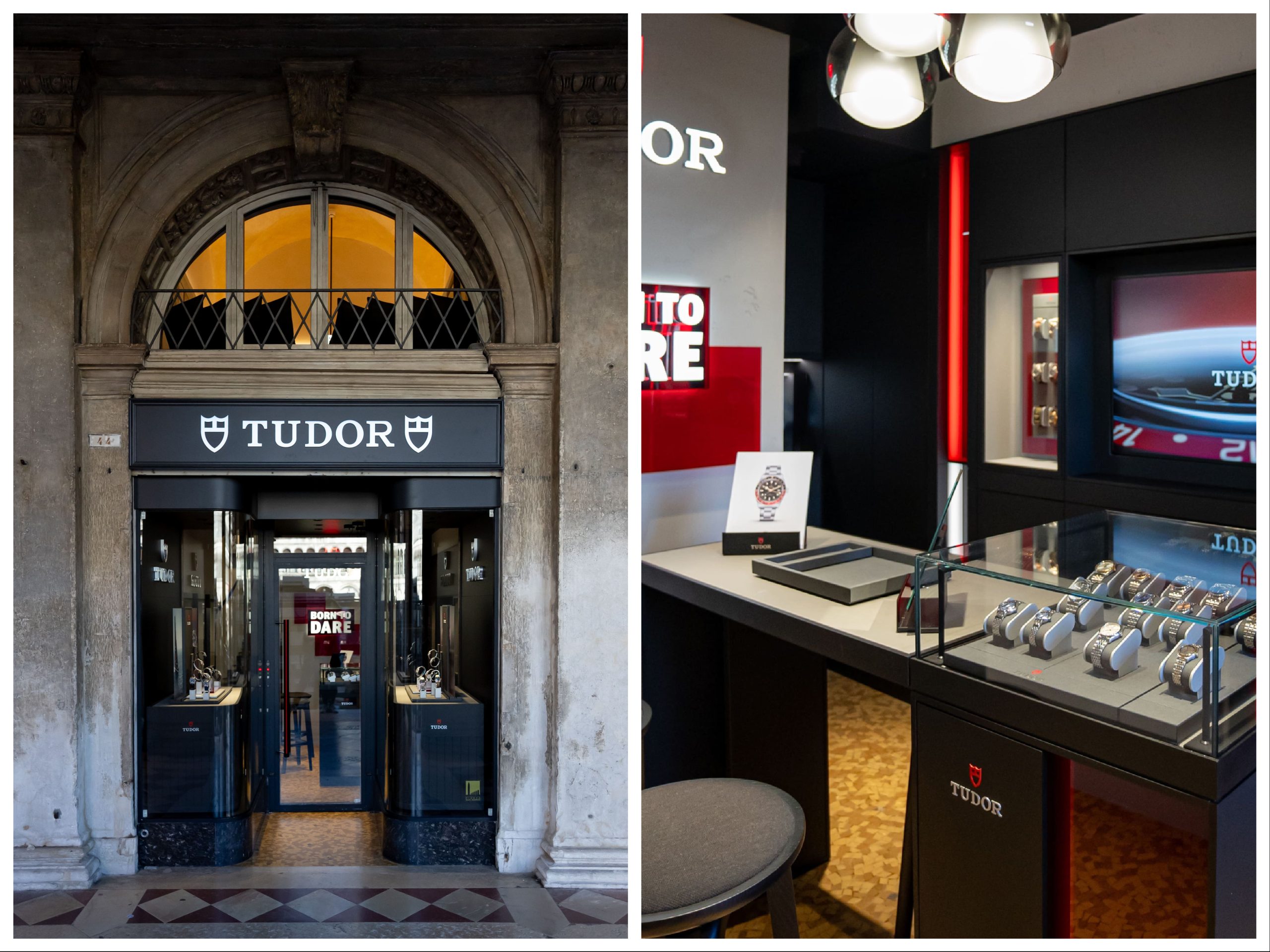 Torniamo in Italia perché finalmente anche Tudor ha una sua boutique veneziana su due piani in partneship con Salvadori, in San. Marco n°44, è la prima a Venezia e la terza in Italia. Aperta il 27 Settembre ha attirato l’attenzione di tutti con i suoi tradizionali colori rossonero e grigio. Dal primo piano la vista spazia su San Marco attraverso una grande vetrata; il pavimento al piano terra e il soffitto a volte al primo piano sono quelli originari, mantenuti per preservare l’autenticità degli spazi.Ampia l’offerta di orologi, tra i quali spiccano le due referenze esclusive “Boutique Edition”: il Black Bay Chrono Blue e il Black Bay 58 Bronze.