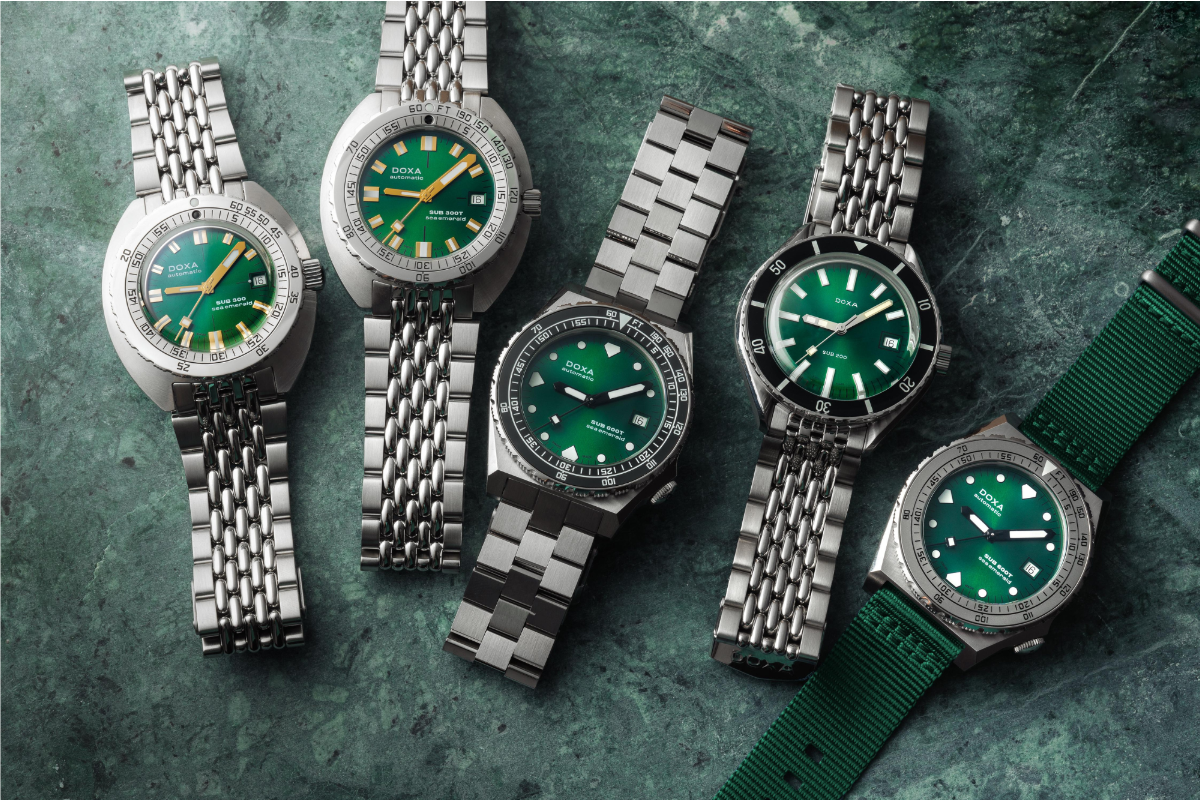 Perrelet Turbine Blue Ice- Il Turbine si presenta al Quinto GWD con le pale in azzurro, anzi in Blue Ice e scelte cromatiche abbinate ai cinturini.FAVRE LEUBA: rinasce il marchio che per età è secondo solo a Blancpain; ne abbiamo scritto nella presentazione dell’esclusivo cocktail tenutosi a GWD il 28.8; oggi il Presidente e CEO Patrik Hoffmann, dorte dell’esperienza accumulata da Ulysse Nardin, è orgoglioso delle 22 nuove referenze che compongono le tre collezioni articolate sui temi del mare e della terra, ognuna con differenti movimenti delle Manifatture la Joux-Perret e Chronode. L’automatico fotografato con quadrante e lunetta blu si affianca alla più classica versione in nero.URWERK, l’iconico orologio Urwerk qui in edizione limitata a 10 esemplari con cassa in titanio, è stato svelato alcuni giorni prima di G.W.D.2024Angelus molto belli il design della cassa in titanio e la scelta cromatica del quadrante con due toni di grigio. All’interno del Chronodate Titanium il movimento automatico A-500 con ruota a colonne che mostra i piccoli secondi alle 9 e i 30 minuti alle 3.caliber, sul bordo del quadrante l’indicatore della data.GIRARD-PERREGAUX l’Esmeralda tre ponti d’oro, il più importante orologio della Marca elvetica, vincitore di premi sin dal suo primo apparire, qui in una versione cromatica basata su una luce dal color miele dorato che mette in risalto lo scappamento a tourbillon.Frédérique Constant Classic Moon (si affianca anche ai Classici piccoli secondi con cassa in acciaio, cinturino o bracciale e anche con diamanti) da notare la bella fattura del quadrante a righe orizzontali.HYT fra le novità la Hyt Capsule Millesimé che sarà disponibile solamente dal Settembre 2024 all’Aprile 2025 dedicata alla collezione ‘T1 Series’ , i tre orologi sono disponibili a seconda della quantità e non per una tiratura definita.ALPINA watches presenta l’Heritage Automatic che si ispira a un modello ø 25,7 mm il cui disegno è custodito nell’archivio della Marca, Quello attuale in acciaio con indici in cifre romane o arabe, ha un diametro di 38 mm. DOXA nel 2024 cinque orologi scelti con quadrante verde compongono la collezione dei SUB DOXA: SUB 200, SUB 300T, SUB 300, SUB 600T, and SUB 300 Carbon; da ricordare inoltre l’Aristera Sub300 con quadrante arancio che ricorda il primo subacqueo della Marca: la tiratura è stata limitata a 300 esemplari mondo e si deve ordinare adesso sul sito Doxa, dal prossimo ottobre.novembre invece lo si troverà nei punti vendita selezionati.