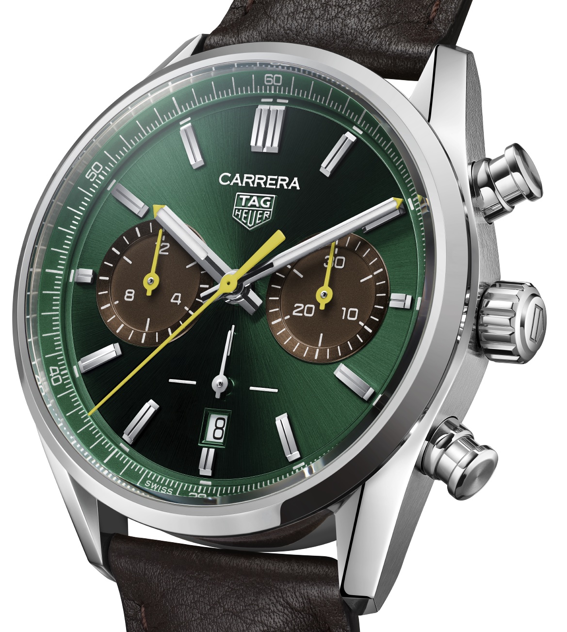 TAG Heuer and a limited version green-brown of Carrera Chronograph (600 watches for European market) for this historical classic challenge.
