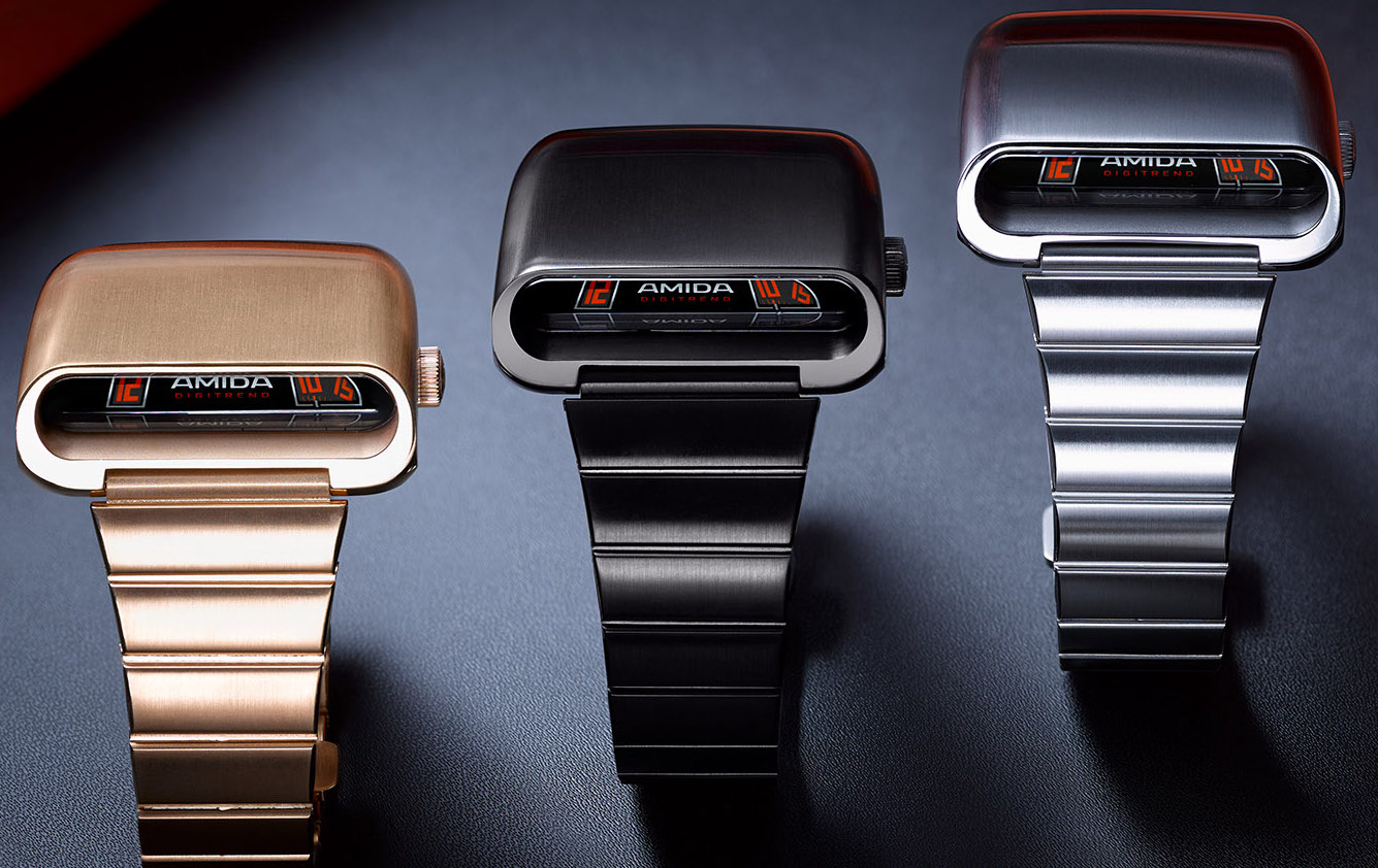 Ci stiamo riferendo agli orologi “casquette” e molti lettori avranno pensato subito ai Girard-Perregaux, ma il mondo orologiero è pieno di sorprese e ieri abbiamo imparato che Amida, marchio svizzero tornato in vita, aveva realizzato un analogo modello ispirato dalle linee delle auto del passato con indicazione digitale, negli anni ’70.