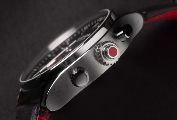 La corona a pulsante, brevettata per entrambe le linee ZM 1 e ZM 2, concretizza un altro chiaro riferimento stilistico al pulsante di scatto color rosso (Leica!) tipico delle fotocamere: una volta premuta, permette di azzerare la lancetta dei piccoli secondi se è impostata la funzione della messa all’ora; altrimenti consente direttamente la carica del movimento. La situazione può essere facilmente verificata grazie a un piccolo oblò, che per mezzo di un disco rosso (Leica!) o bianco, indica se la corona è in modalità di carica o d’impostazione delle lancette. L’attivazione della corona pulsante, quindi, è in grado di caricare l’orologio e di disaccoppiare gli ingranaggi delle lancette da quelli del movimento, andando così a permettere una perfetta regolazione dell’ora, magari avvalendosi del segnale orario. Una volta nuovamente premuta la corona, gli ingranaggi del movimento delle lancette tornano ad accoppiarsi senza alcun problema. La filosofia valida per le macchine fotografiche trova un altro segno indistinguibile aziendale nell’indicazione della riserva, poiché la finestrella s’ispira all’apertura e alla chiusura simmetrica dei diaframmi negli obbiettivi delle fotocamere. Il Leica ZM 2, invece, vanta una complicazione in più rispetto a quelle dello ZM 1: sulla cassa al “4” è stata aggiunta la corona per il secondo fuso orario, che regola la scala delle 12 ore poste sul rehaut, coadiuvata dall’indicazione “day/night” sul quadrante, anch’essa di chiara ispirazione al regolatore “ASA/DIN” delle macchine fotografiche.