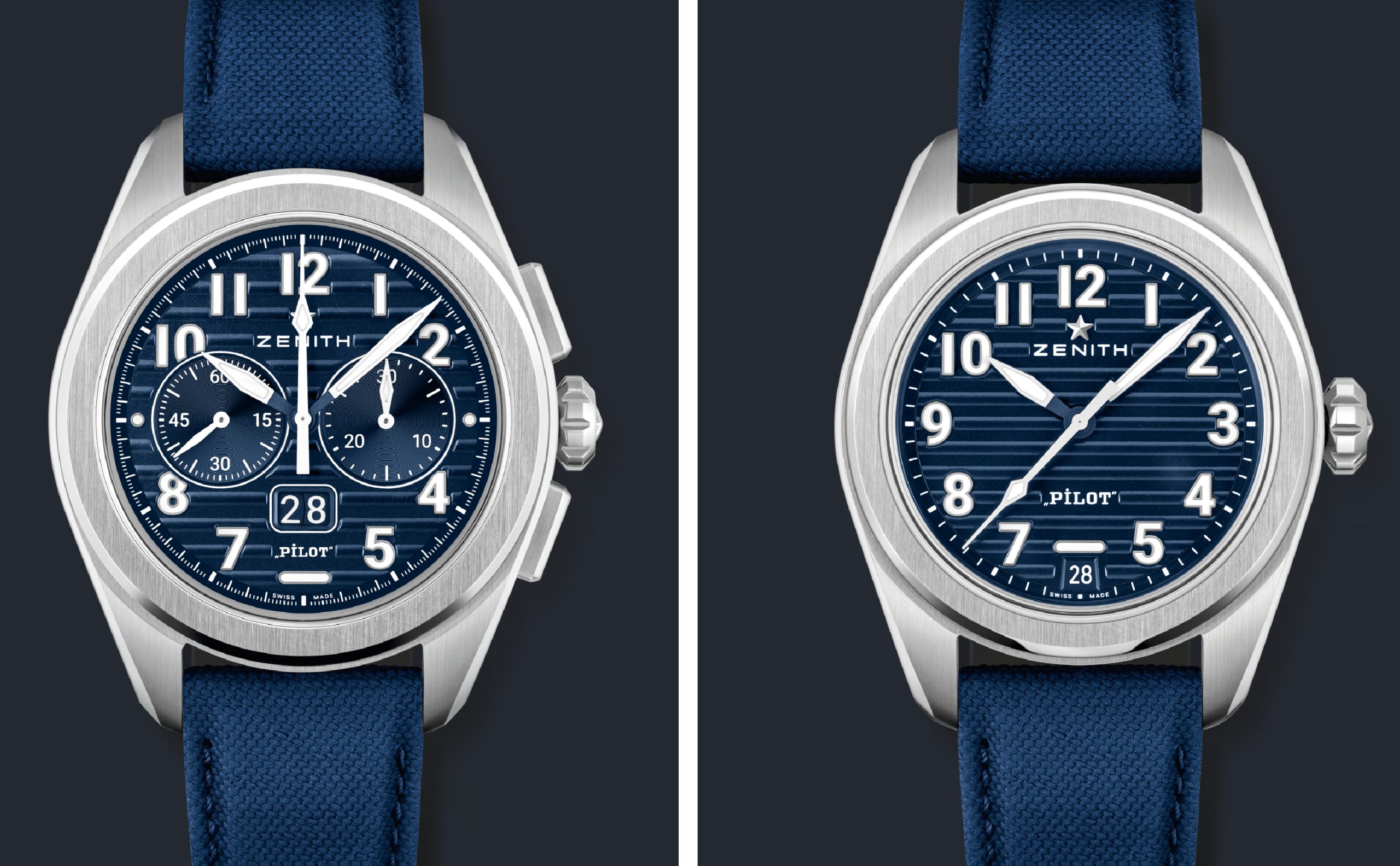 Fra i più amati movimenti meccanici un posto d’onore spetta a Zenith e al suo El Primero che in versione cronografo o semplice automatico, con Calibri di Manifattura ad alta frequenza: 36.000 A/h che animano le due edizioni boutique della collezione Pilot, presentate in gennaio 2024, che possiamo identificare come una Capsule Collection.