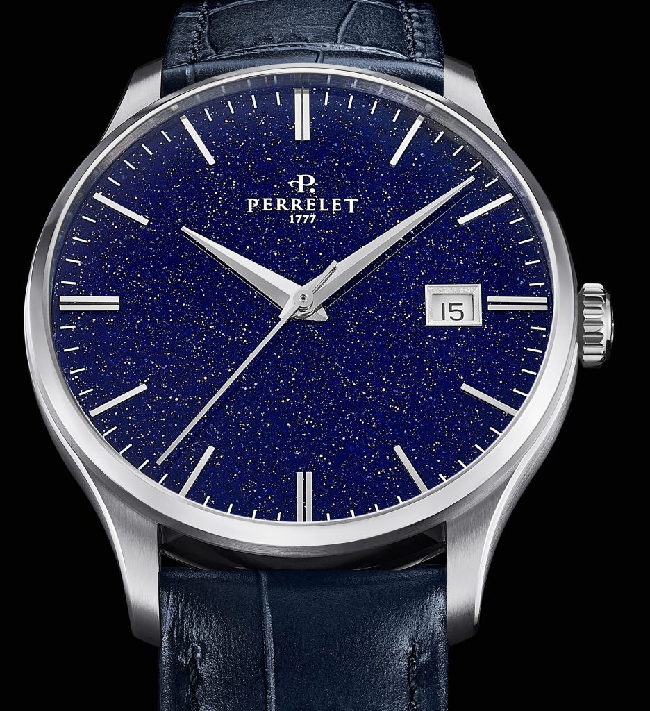 Nella collezione Weekend, Perrelet ha introdotto un quadrante in scintillante Avventurine blu; il movimento è il calibro automatico esclusivo P-321 Soprod (azienda che fa parte del Gruppo di cui è proprietario Miguel Rodriguez) A/h28.800, riserva di carica 42 h.