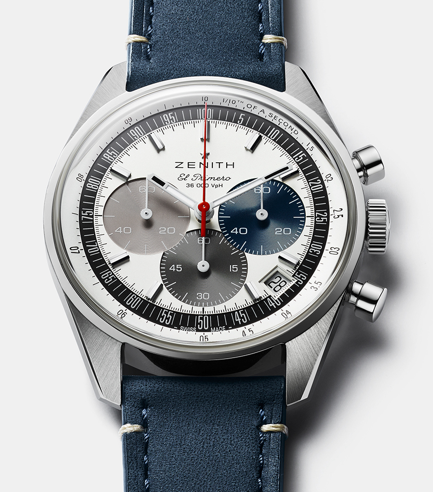 Quel cronografo con triplo calendario è ritornato adesso nel Chronomaster Original con una cassa da 38 mm che richiama lo storico A386; le funzioni del calendario completo e delle fasi lunari si uniscono alla precisione al 1/10 di secondo del calibro El Primero 3610 (36.000 A/h, riserva di carica 60 h).