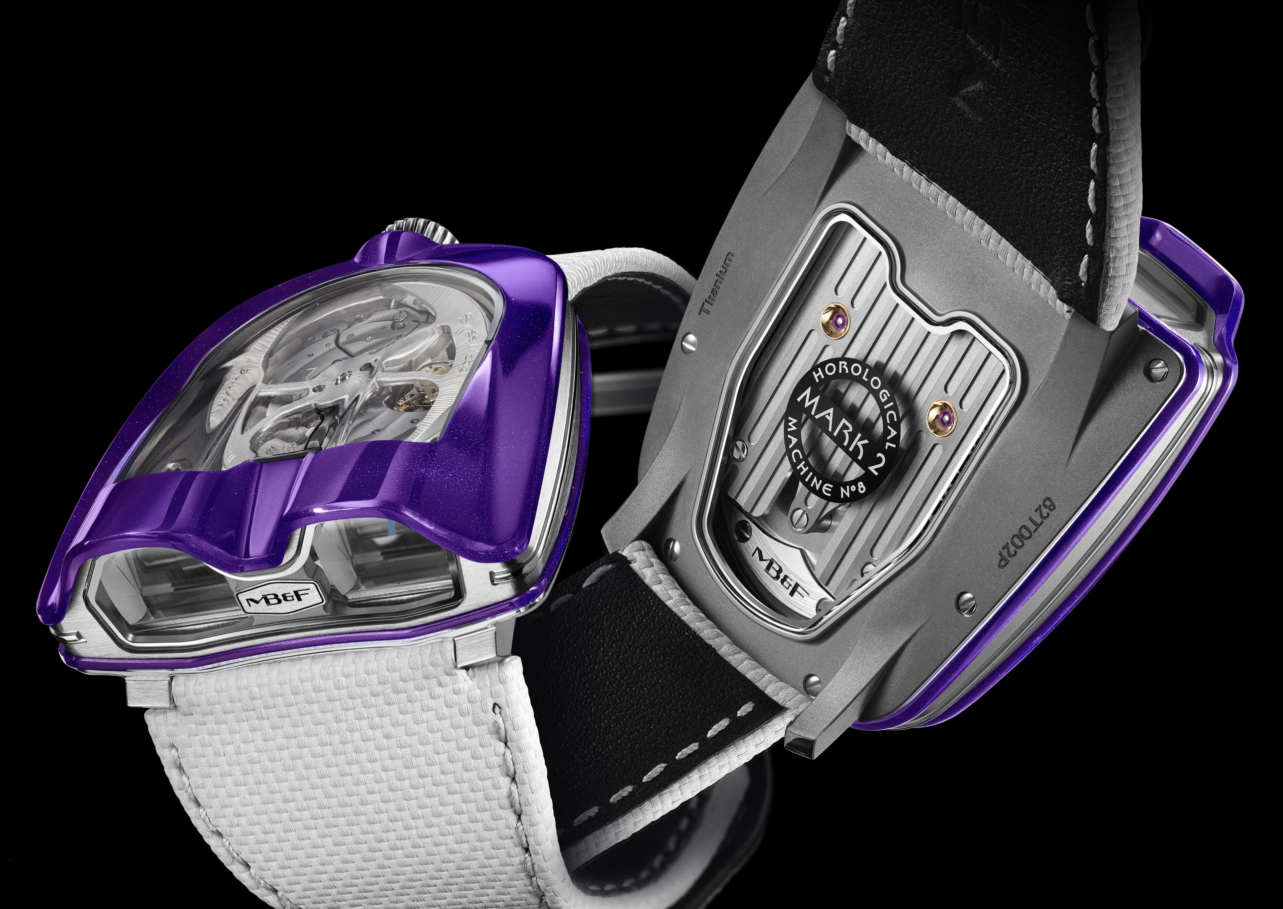 MB&F nel 2023 ha dedicato all’automotive (in particolare le dream-cars) uno dei suoi orologi più rappresentativi l’HM Mark2, tuttora in produzione in un bianco immacolato, mentre oggi vediamo l’Horological Machine nella nuova tiratura di 33 esemplari con dettagli “purple” o, per gli italiani, viola traslucente grazie a pigmenti naturali.