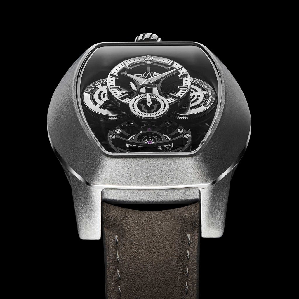 Le caratteristiche del titanio sono ben note a chi ama gli orologi, nella novità realizzata da ArtyA c’è da rilevare, nella cassa ø 38,5 mm, spessore 12 mm w.r. a m.50, l’accurata finitura della superficie con metodi artigianali: pulitura, sabbiatura e un trattamento DLC trasparente anche sul fondo che consente di ammirare il movimento. Questo è il Purity Curvy Stairway to Heaven a carica manuale; ideato e realizzato in Svizzera ha uno spessore di 5,43 mm A/h 28.800, rubini 22 e grazie alla finitura a specchio non mostra la pelle del braccio ma concentra l’attenzione sui componenti scheletrati. La riserva di carica con due bariletti paralleli dal disegno attualizzato è di 72 ore. Un comodo cinturino in Nubuck con fibbia ad ardiglione ArtyA completa l’estetica di questa novità estiva.