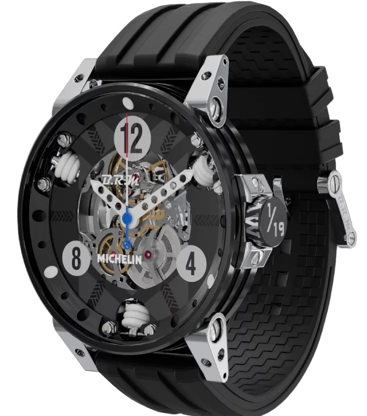 Automotive, racing e orologi vedono spesso nuovi segnatempo; nel 2025 B.R.M.Chronographes ha presentato il V6-44-SLB Michelin, dedicandolo all’anniversario della M che dal 1919 appare sulla mescola dei pneumatici Michelin.