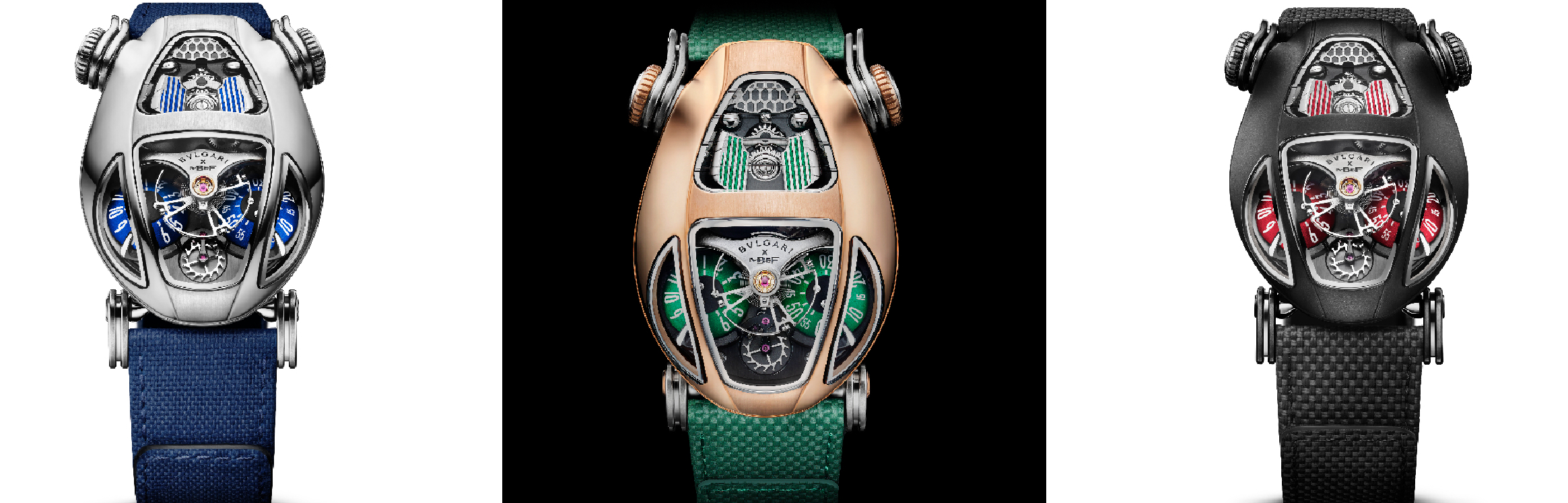 Tornando all’estetica e alle notizie per chi volesse acquistarlo, il Bvlgari x MB&F Serpenti è realizzato in tre versioni distinte dai colori della cupola: questa è in alluminio blu per la cassa in titanio grado 5; in PVD nero per quella in acciaio, mentre per quella in oro rosa, la cupola è in oro rosa. Ogni versione è realizzata in edizione limitata a 33 esemplari.