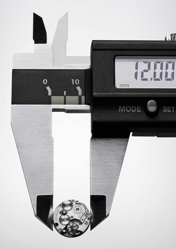 Apriamo con il movimento Bvlgari Piccolissimo che, come si vede dall’immagine che misura il diametro di questo capolavoro, si ferma a un diametro di mm 12. A seguire orologi d’Alta Gioielleria che hanno incantato il pubblico presente.