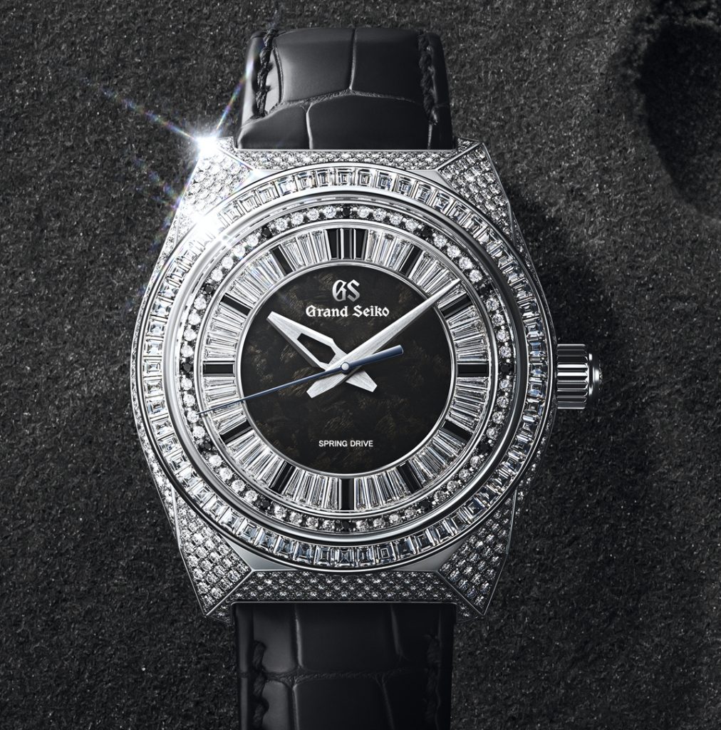 Disegnato dal Micro Artist Studio per Grand Seiko, l’esclusivo orologio gioiello Black Lion, con cassa in platino (rifinita con la tecnica Zaratsu per essere particolarmente lucente) nella quale sono incastonati 649 diamanti e 26 spinelli neri, è equipaggiato con il Calibro 9R101 Spring Drive che garantisce 8 giorni di carica. Solo otto gli esemplari.