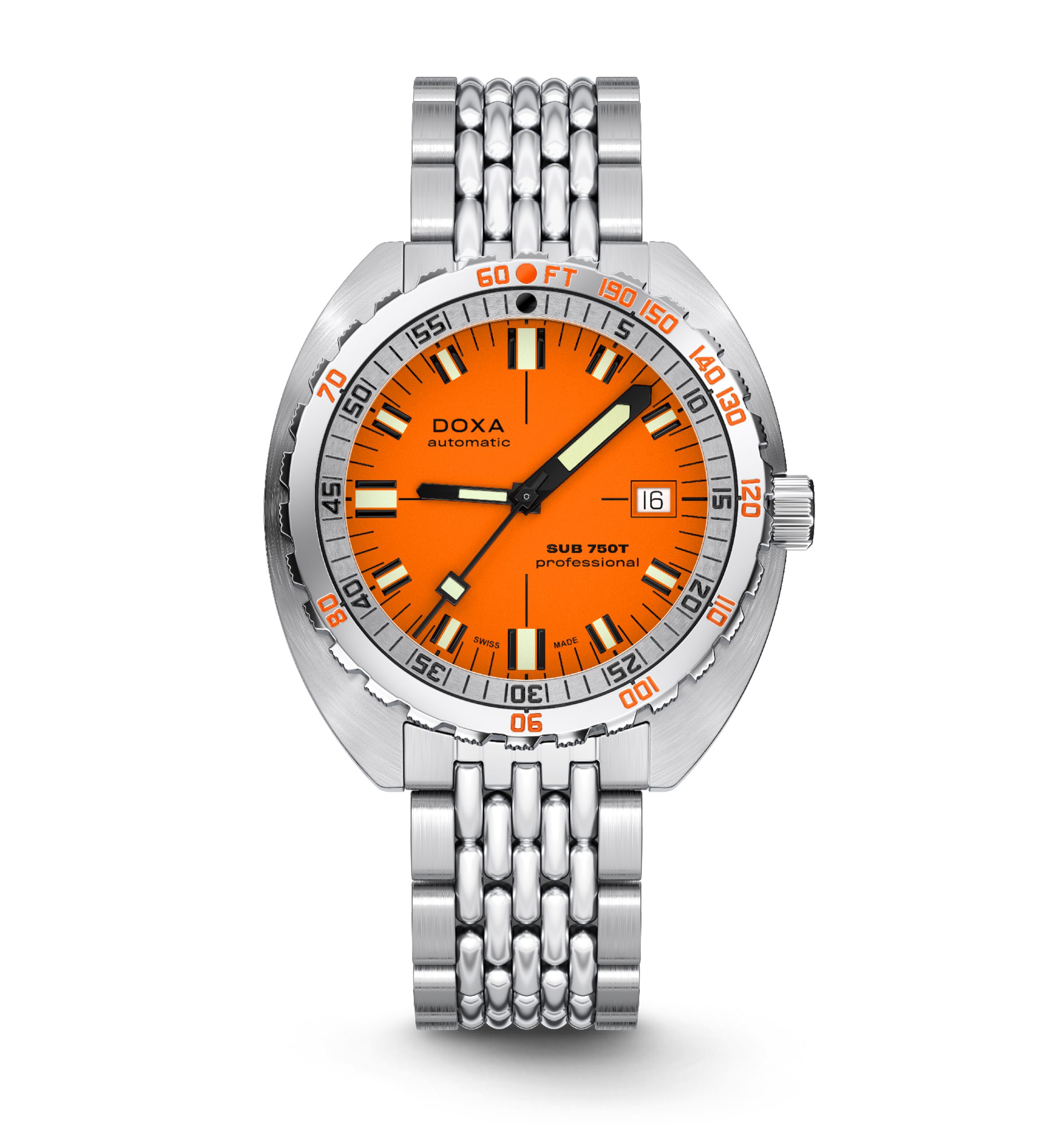 At the end of September people loving professional Doxa sub may order new Sub 750, whose shape and color were inspired by first watch born about 20 years ago.