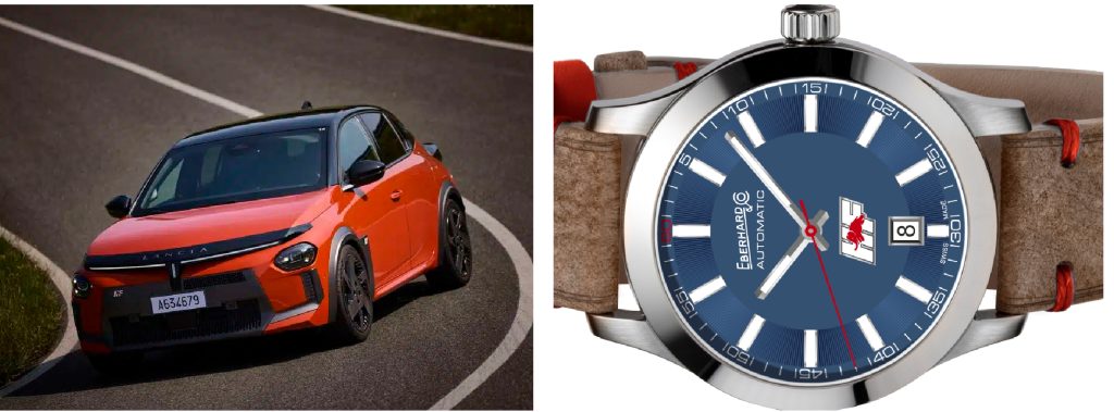 New electric Lancia cars unveiled today with a a self wuinding Eberhard & Co. watch, suitable from next 2025 last months.