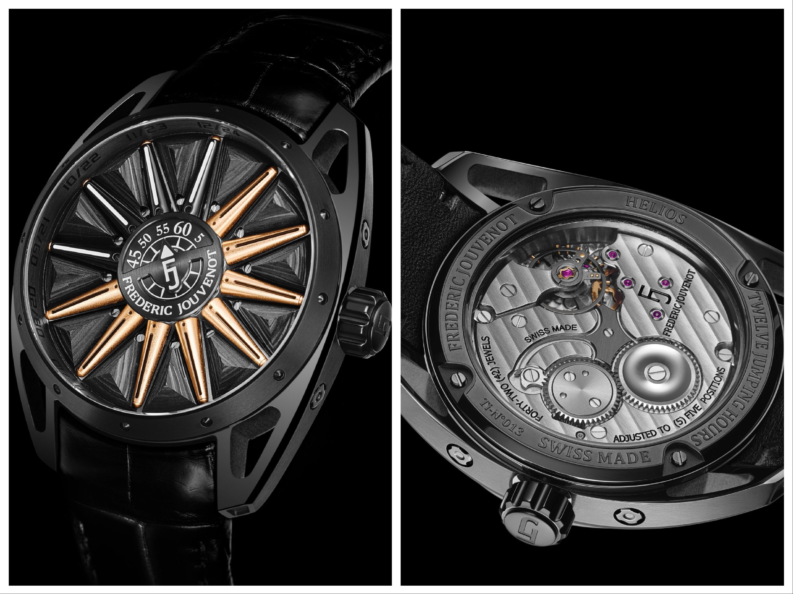 La collezione Solar Deity di Frederic Jouvenot, noto Maestro orologiaio che ha fondato la sua Marca nel 2008 ed è cofondatore della Manifattura Concepto, si arricchisce dal mese di Marzo 2025 di una nuova versione, Swiss Made, che indica il passaggio delle 24 ore con un sistema brevettato.