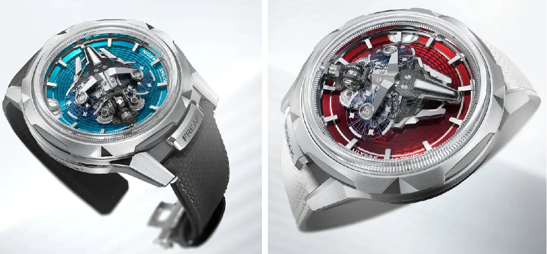 Two Ulysse Nardin novelties unveiled in 2025: Freak S with wonderful dials, blu or red enamel, made by Donzé Cadrans, specialized firm owned, since 2011, by Ulysse Nardin.