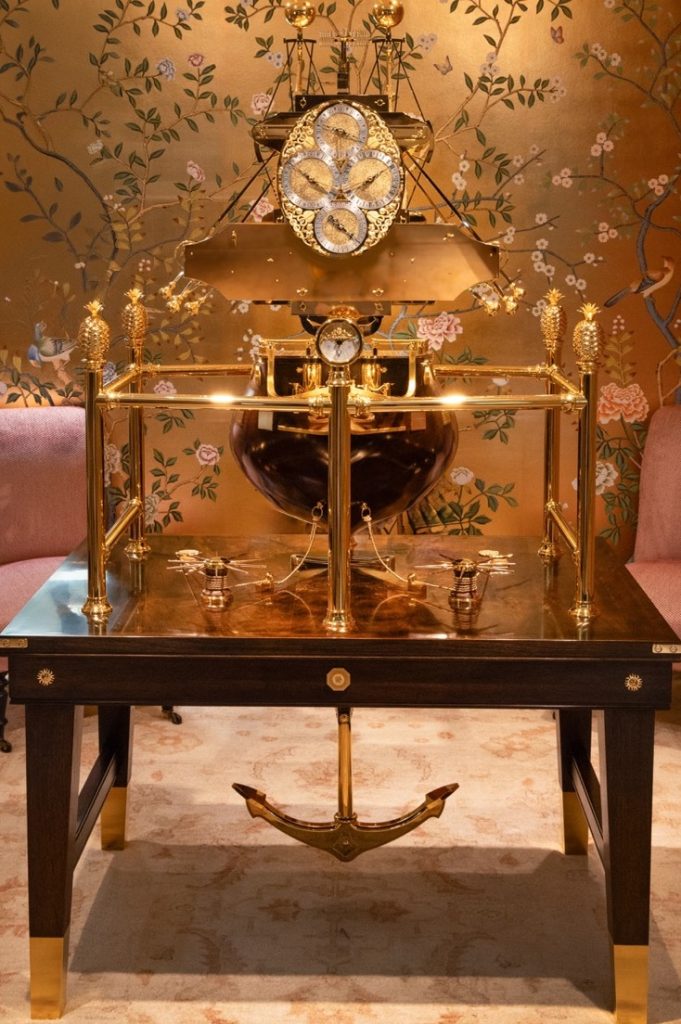 Dal 2022 la prima idea del progetto di Broy e Pragnell si è man mano evoluta: la replica è montata su un supporto che imita il rollo delle navi, sotto la chiglia una grande ancora zavorrata oscilla lentamente avanti e indietro. Sono arrivati poi anche dettagli artistici sulla cornice della nave (quella presa a modello è la Centurion che compì uno storico viaggio in Giamaica); dettagli che sono anteriori all’epoca di J.Harrison: l’ananas, frutto tropicale, non sarebbe mai arrivato sulle tavole dei nobili del XVIII secolo senza l’aiuto dei cronometri marini.