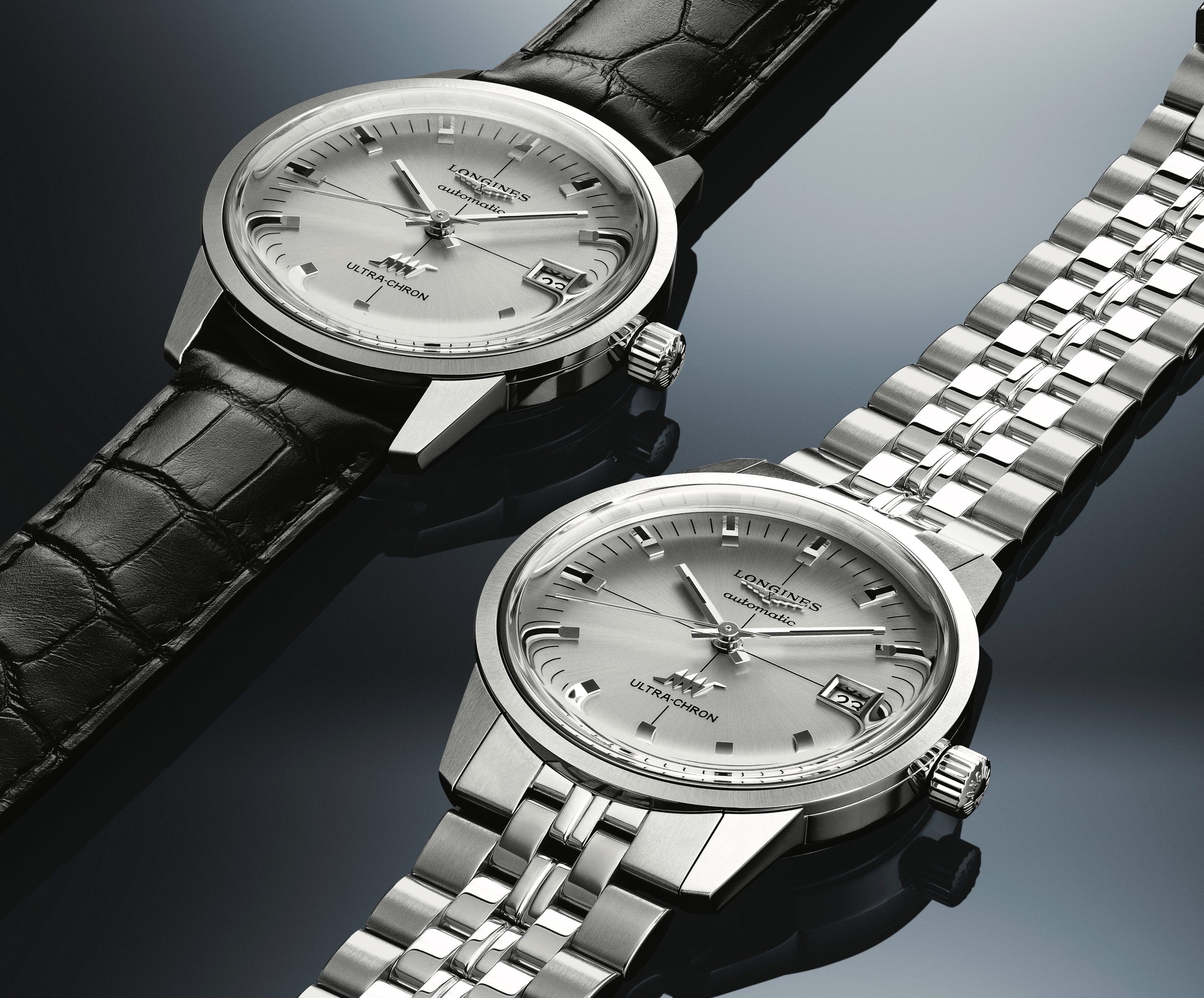 Il nuovo Ultra-Chron Classic è disponibile con cassa in acciaio inossidabile ø 40 o 37 mm, per entrambe lo spessore è di mm 10.95, e sono w.r. a m.50 (l’orologio del 1967 aveva un diametro di 35 mm); sul quadrante bombato argentato e lavorato a soleil i 12 indici argentati lucidi sono applicati così come il logo originale Ultra-Chron e il nome Longines. Il bracciale in acciaio inossidabile ha maglie ovali ispirate a bracciale del 1967 e la fibbia déployante con doppio sistema di sicurezza azionato dai pulsanti è dotata di microregolazione; se si preferisce il cinturino questo è in alligatore nero con fibbia ad ardiglione in acciaio.