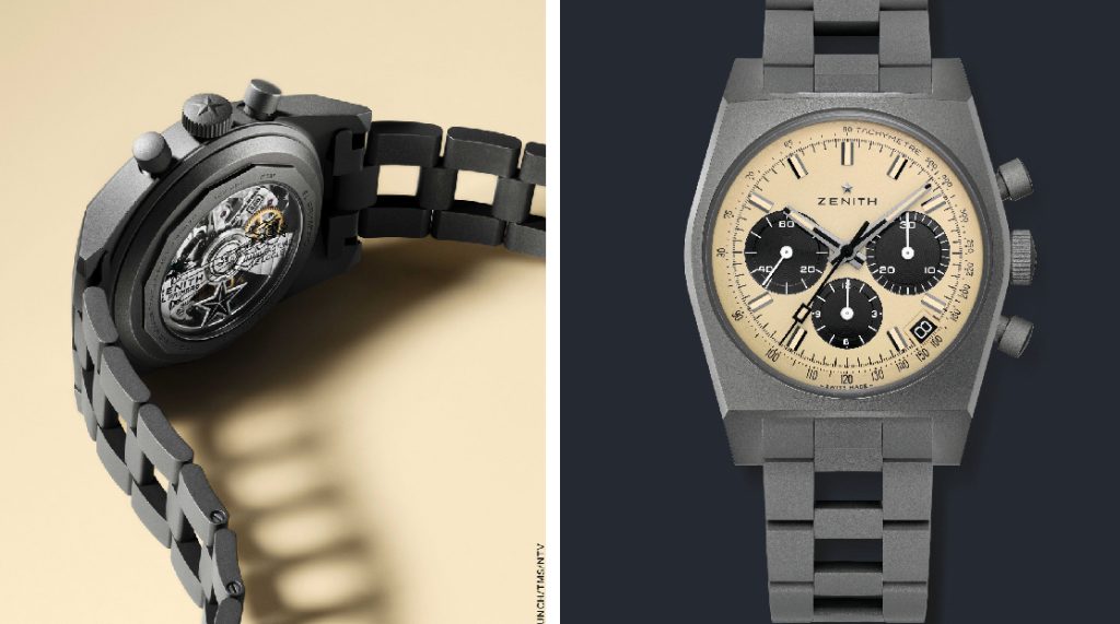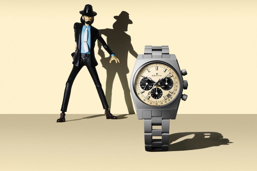 Il legame del marchio elvetico con Lupin III risale ai primi anni ’70, quando Daisuke Jigen, il tiratore scelto della serie, fu raffigurato con un orologio chiaramente ispirato alla referenza Zenith A384 del 1969, un orologio che però che in realtà non era mai esistito in catalogo. Arsenio Lupin era un personaggio di fantasia creato nei primianni del Novecento dallo scrittore francese Maurice Leblanc che si era ispirato a una persona reale, l’anarchico e ladro francese Alexandre Marius Jacob, che derubava i ricchi per finanziare movimenti politici (si ritiene anche fosse una risposta francese alla figura di Sherlock Holmes apparso in quello stesso periodo). L’orologio del novembre 2025 riprende l’orologio del passato ø 37 mm A384, ha la cassa tonneau in titanio in tonalità grigio scuro, sul quadrante beige con contatori neri, indici e lancette luminescenti, la data è sempre a ore 4.30; incisione della silhouette di Lupin visibile anche sul retro attraverso la protezione del cristallo di zaffiro. Il movimento è il Calibro El Primero 400 di Manifattura con ruota a colonne, A/h 36.000,cronografia a 1/10 di secondo e riserva di carica di 50ore. Il bracciale in titanio riprende il design di quello originale ideato da Fay Frères. Il Chronomaster Revival Daisuke Jigen Edition è stato presentato il 19 novembre nello spazio Zenith-pop del grande magazzino Isetan Shijuke (uno dei 23 quartieri di Tokyo) prima di arrivare nelle boutique della Marca, nei negozi selezionati nel mondo e sul sito e-commerce online di Zenith Maggiori informazioni su Zenith-watches.com.
